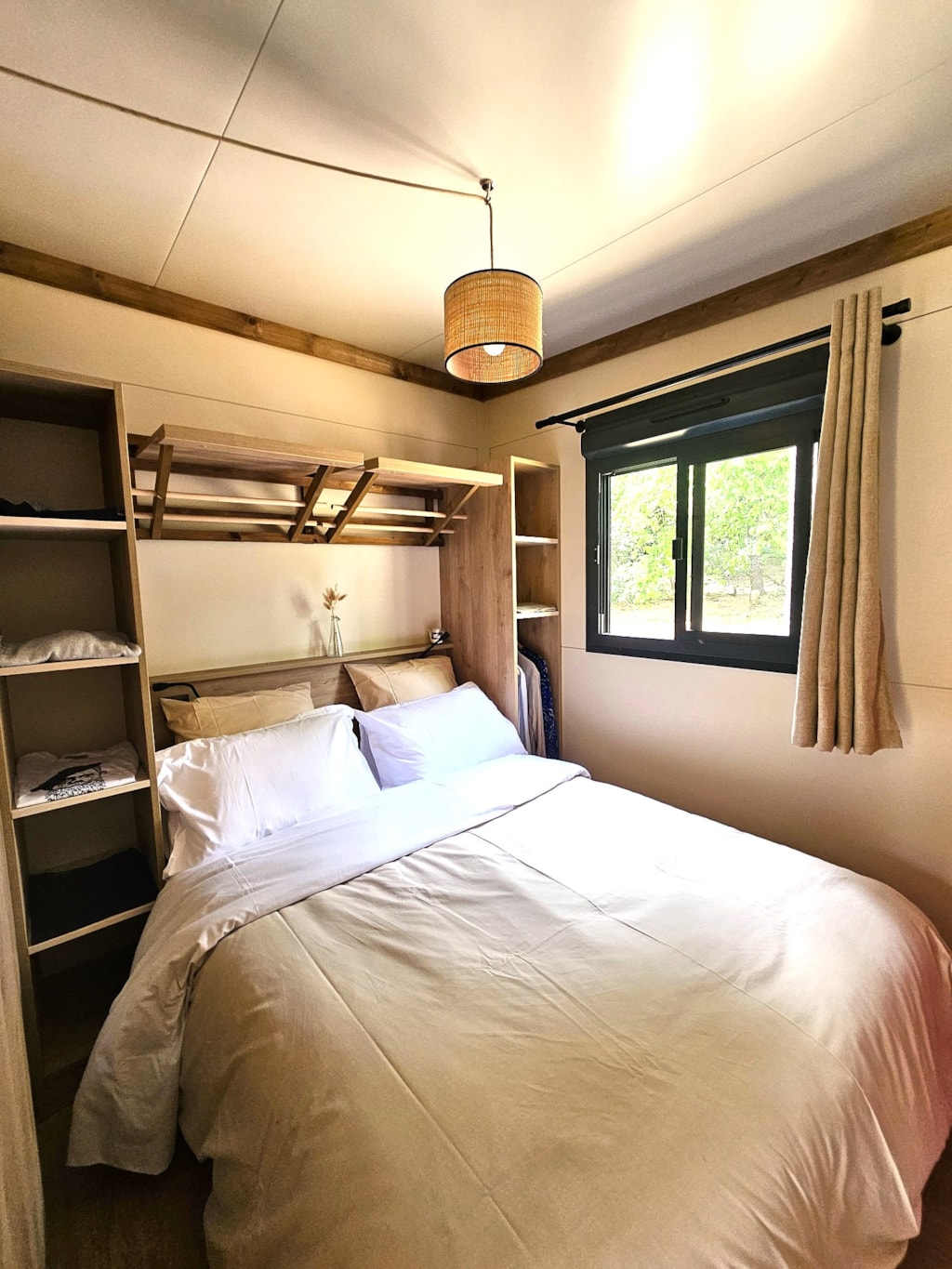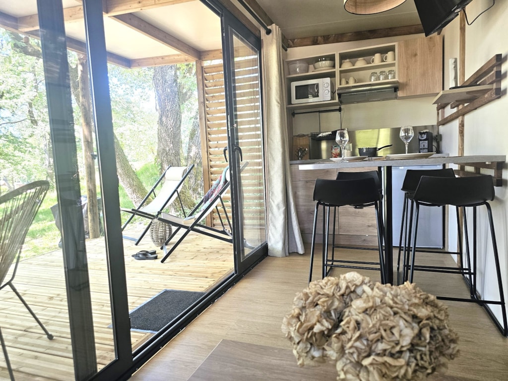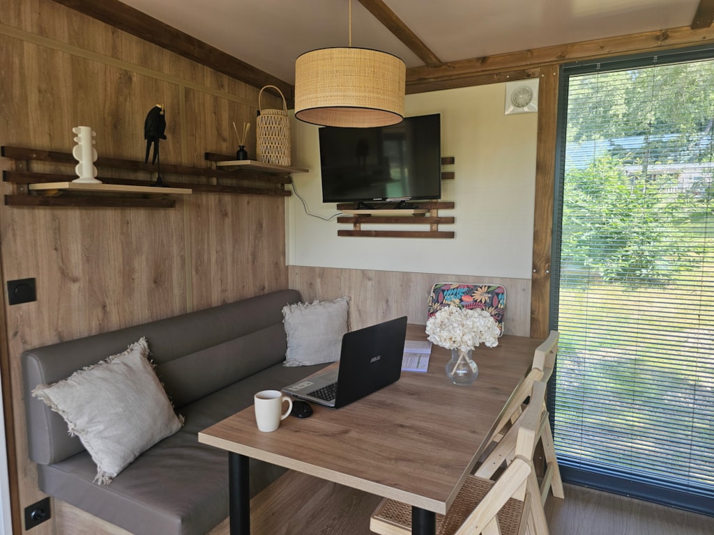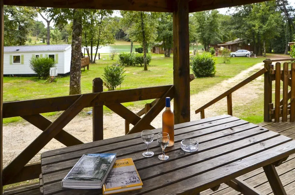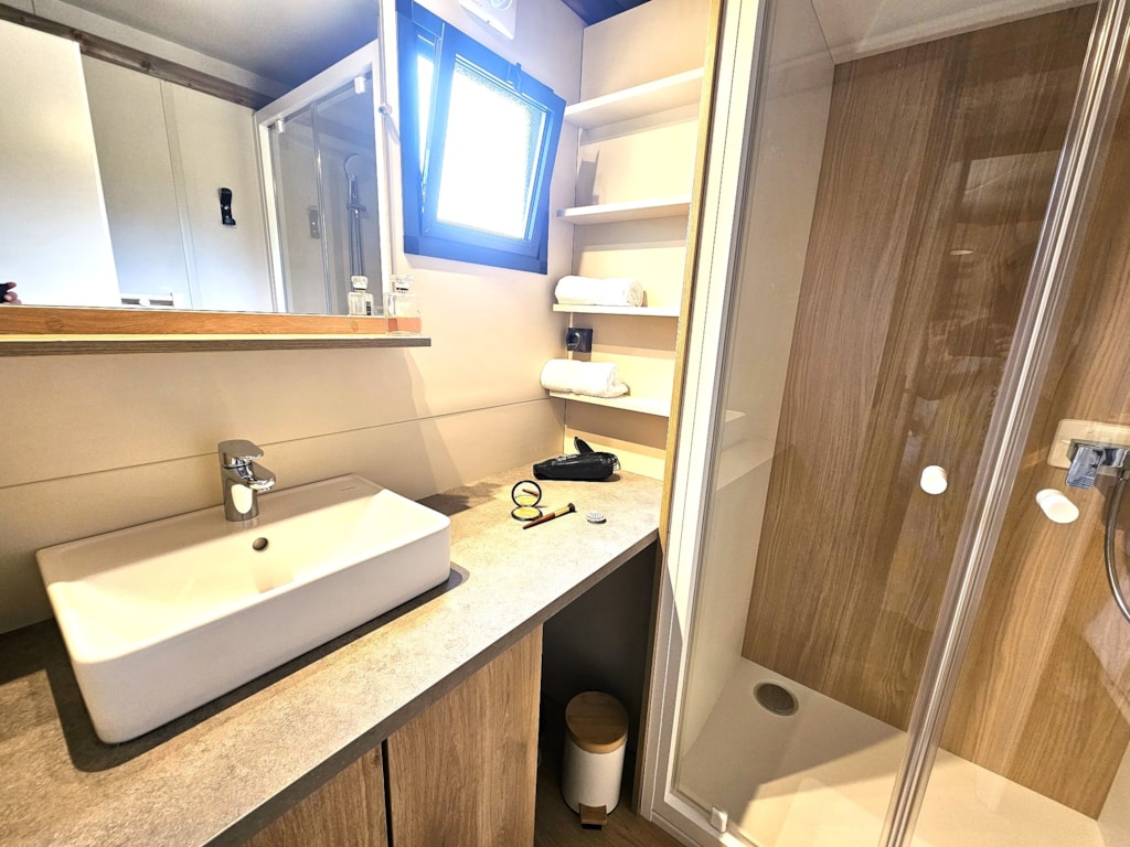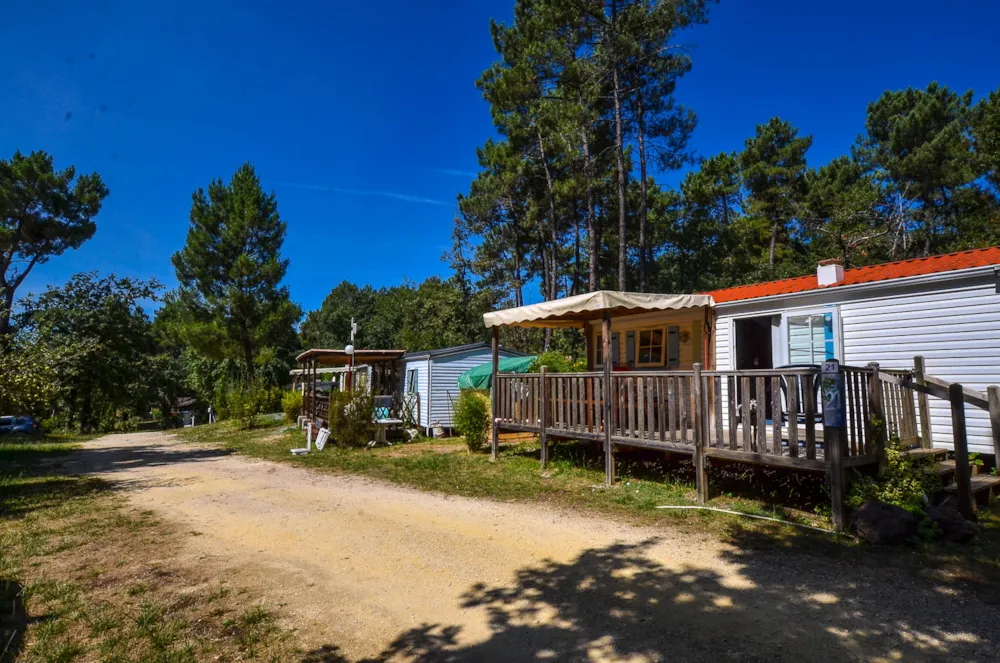Mit Blick auf das Wasser und umgeben von Grün – dieses Mobilheim vereint Raum, Komfort und Ruhe im Herzen der Natur.