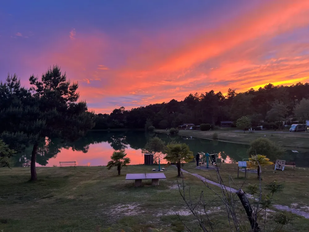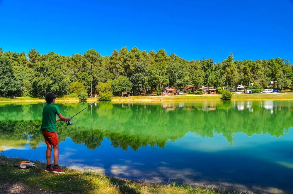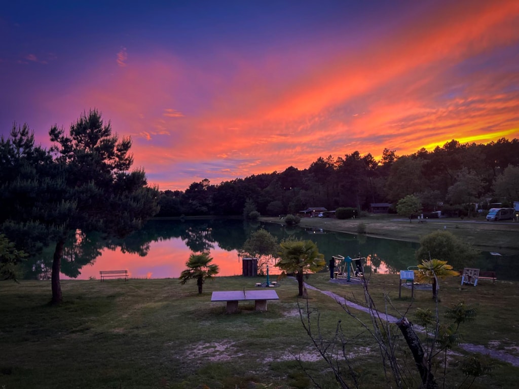 Der Wohnmobilstellplatz befindet sich in einer natürlichen und friedlichen Umgebung inmitten eines grünen Parks. Der Platz erstreckt sich um einen 3 Hektar großen Teich, in dessen ruhigem Wasser sich die umliegenden Bäume spiegeln und wo Sie die Ruhe genießen können. Der Stellplatz ist geräumig und so angelegt, dass er Wohnmobile unterschiedlicher Größe aufnehmen kann, und bietet gleichzeitig einen freien Blick auf den Teich. Rundherum umgibt Sie dichter Wald, der eine ruhige, schattige Umgebung schafft, die ideal für entspannende Momente ist.