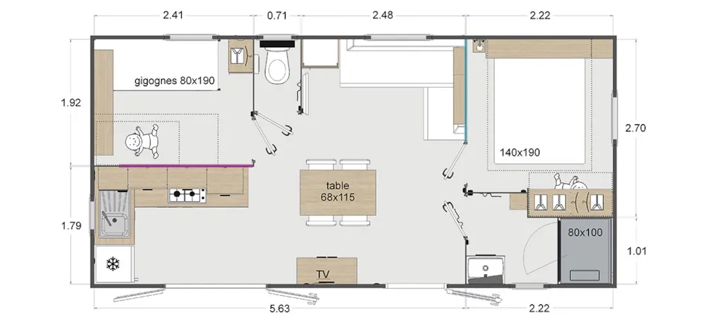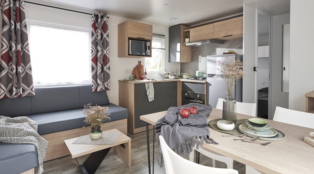 Venez profiter d’un séjour confortable dans l’un de nos mobil-homes modernes. Avec une décoration tendance et soignée, ces hébergements de 29 m² offrent 2 chambres.