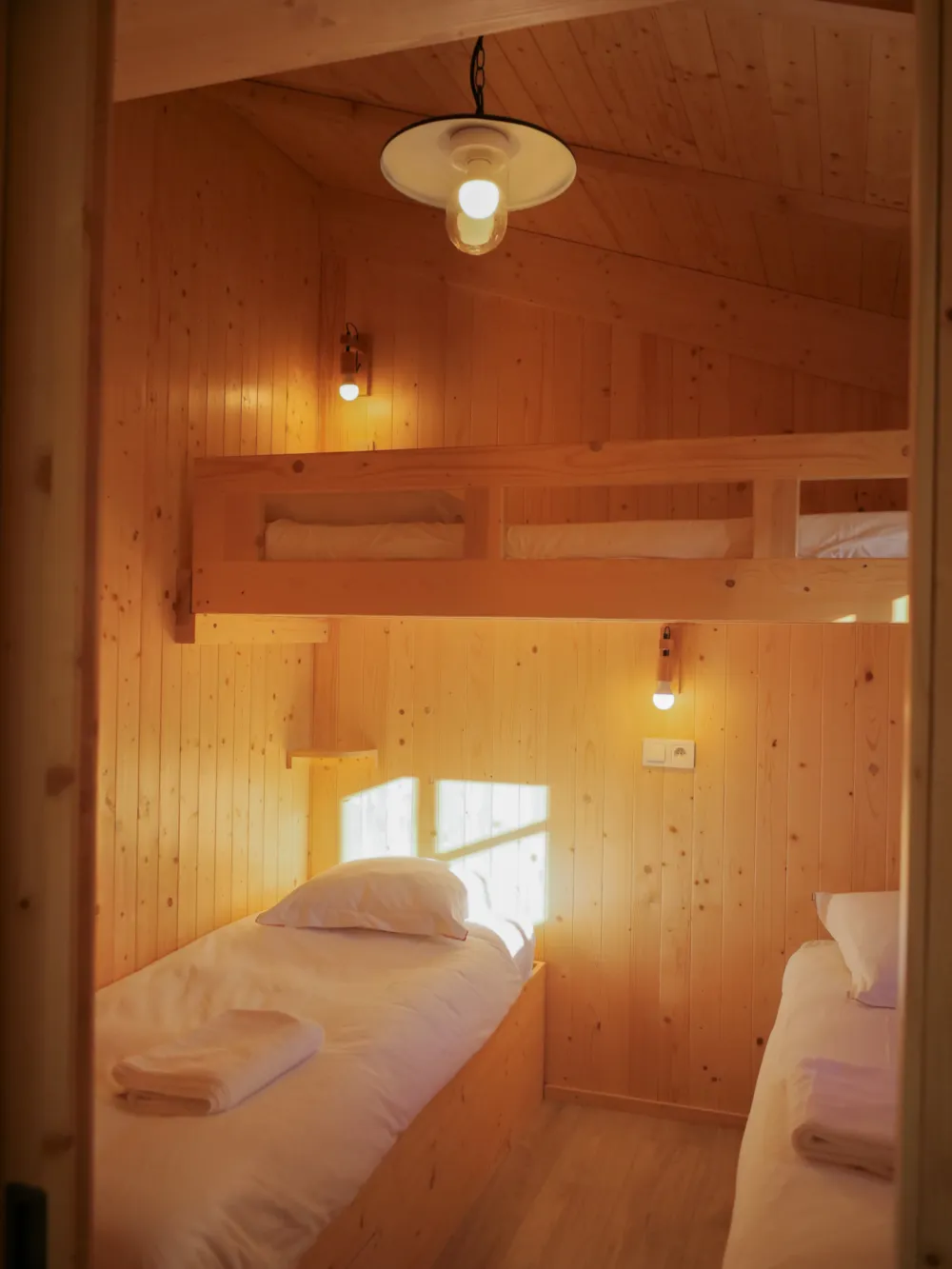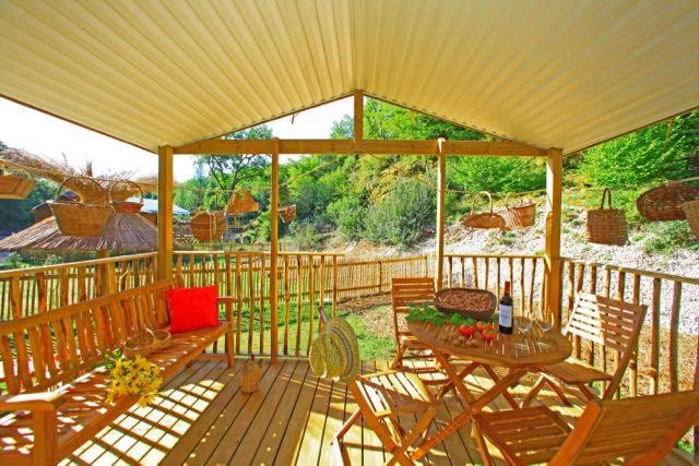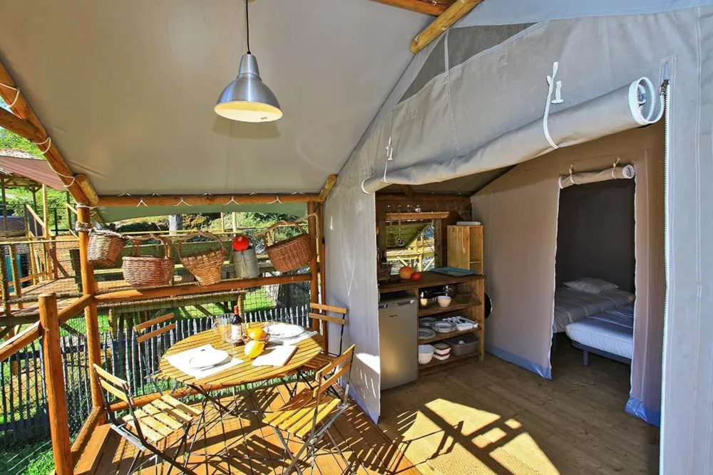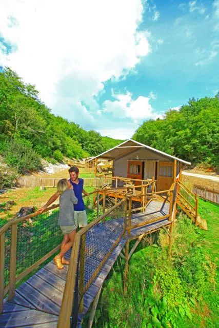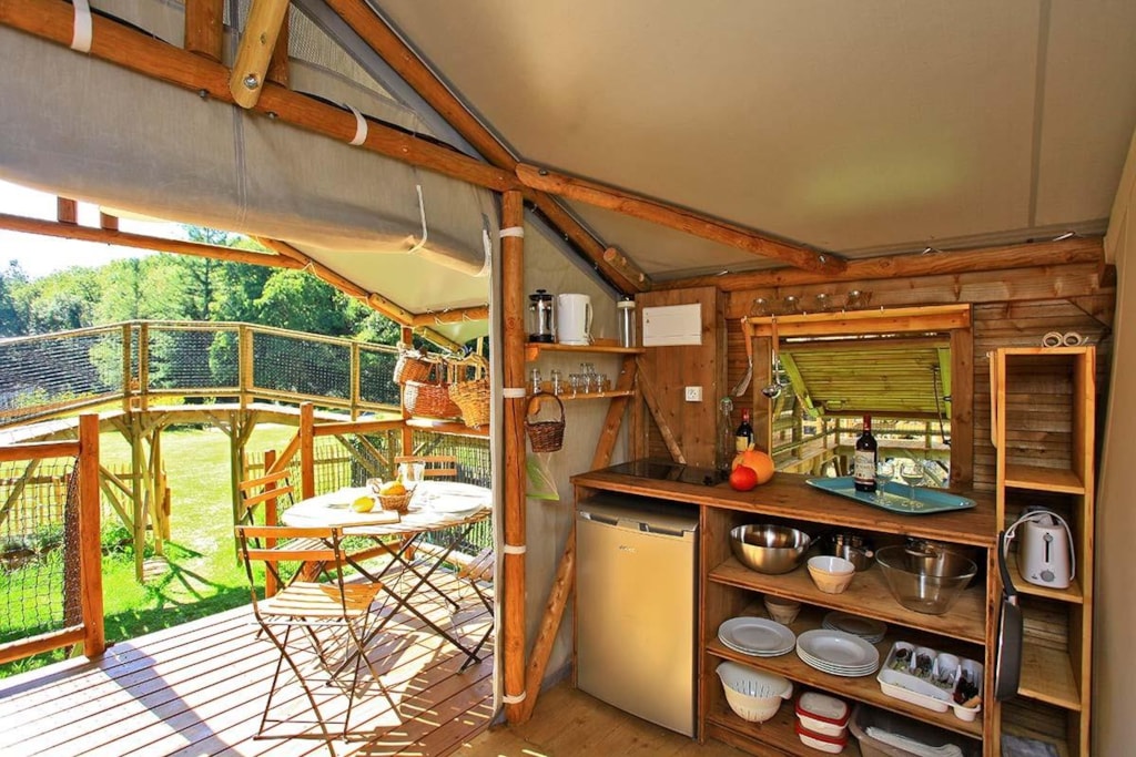 On the Domaine Périgord Vacances you will find three Lodges, entirely designed in wood both inside and out, as tradition dictates. La Pichona (the smallest of our lodges) is a tent concept for 4 people, equipped but without running water. An ideal concept for people wishing to go camping more comfortably.
