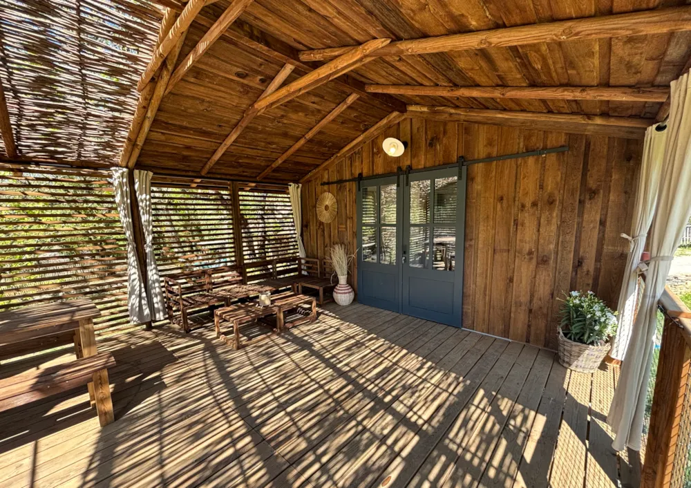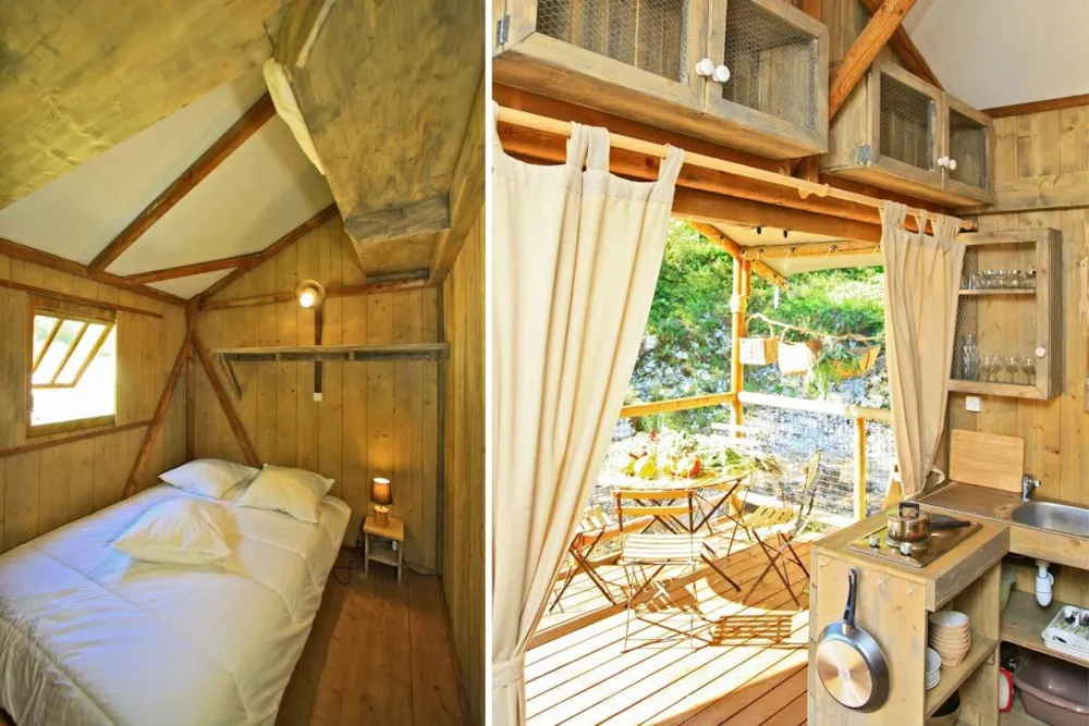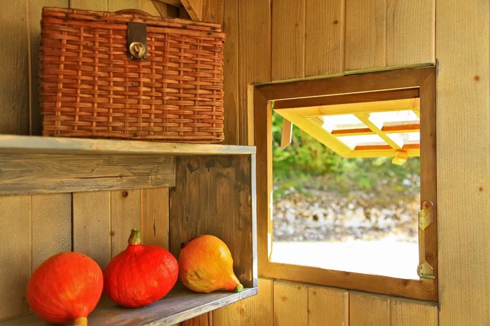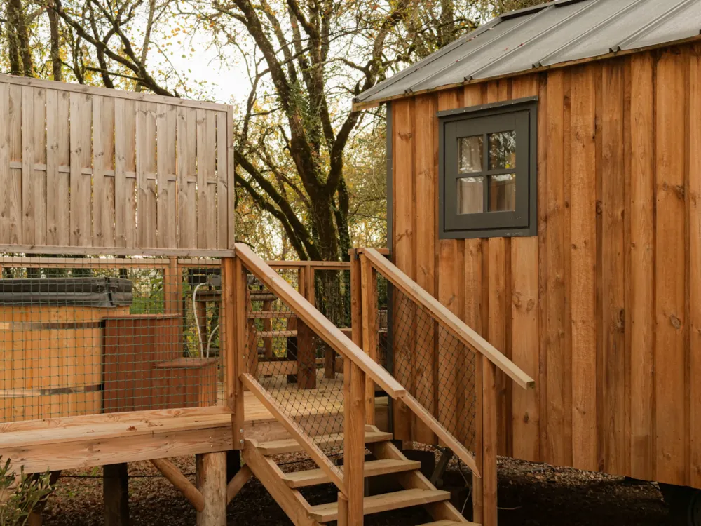 Die Terra Negra-Hütte liegt unter unseren wunderschönen Périgord Noir-Eichen. Zurückgesetzt von den anderen Hütten genießen Sie im Sommer die Ruhe und die angenehm schattigen Bereiche. Beliebt bei Familien mit kleinen Kindern, im Außenbereich haben Sie die Möglichkeit, eine kleine Pergola für Ihre täglichen Mahlzeiten, einen Grill und eine große Wiese direkt nebenan zu genießen.