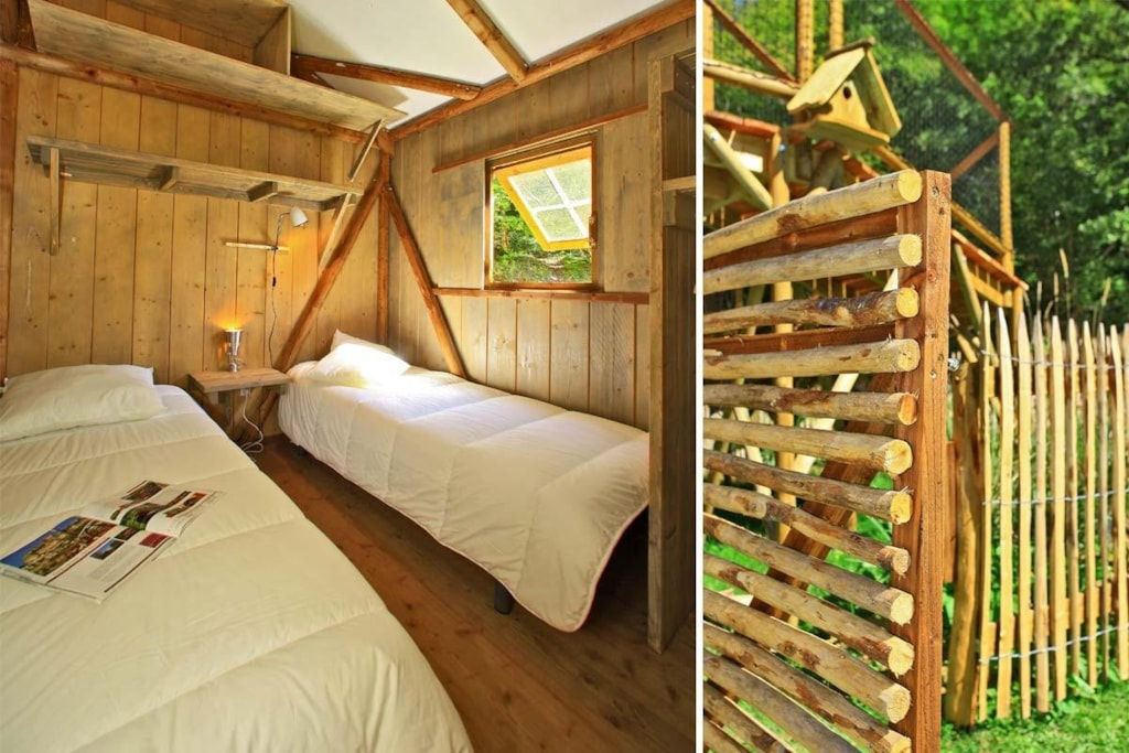 Stets mit der Idee, Ihnen eine atypische und komfortable Unterkunft zu bieten, haben wir dieses gemütliche kleine Nest entworfen, damit Paare, Freunde usw. Erlebnisse in der freien Natur erleben können, während sie sich in einer Unterkunft ganz aus Holz mit großen Öffnungen aufhalten. . Die Hütte befindet sich im oberen Teil des Anwesens und bietet einen atemberaubenden Blick auf das Grundstück und insbesondere auf das Familienhaus. Diesen Ausblick können Sie von Ihrem privaten Spa aus genießen.