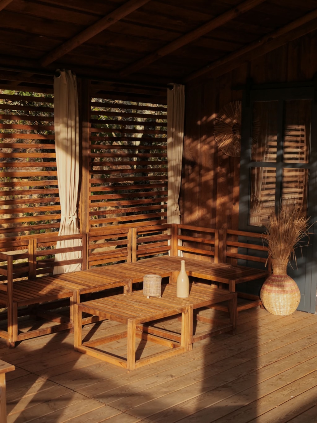 – Vorhänge rund um die Terrasse, um einen intimen Moment zu verbringen