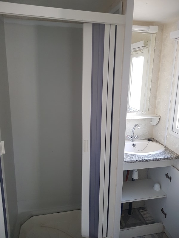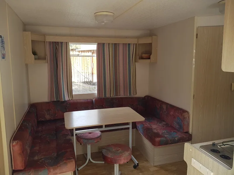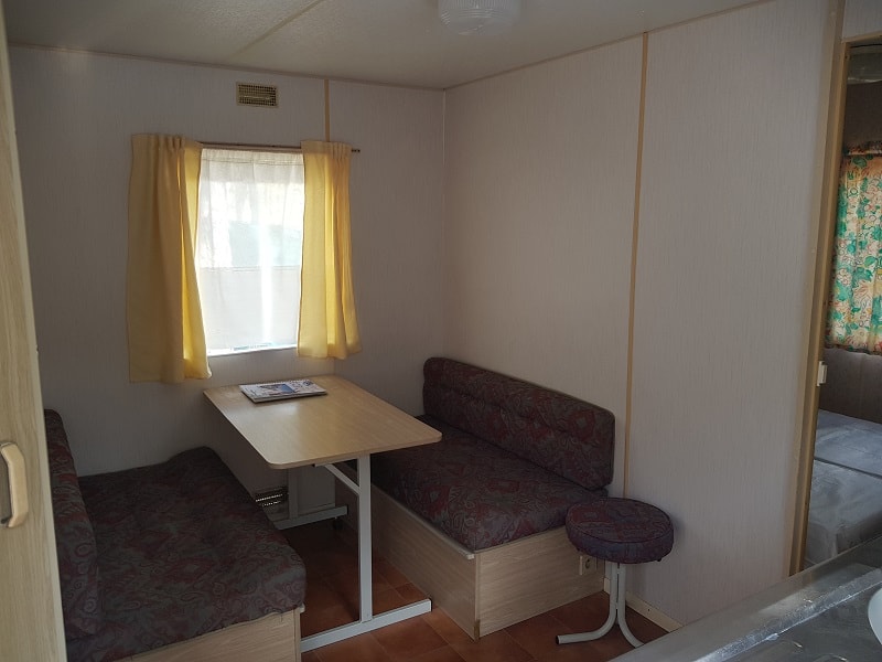 Dieses Mobilhome hat kein Wasser und keine sanitären Einrichtungen. Aber Sie werden sich wohlfühlen. Der Wohnbereich ist optimiert und die offene Küche bietet eine große Arbeitsfläche. Mit 2 Schlafzimmern können Sie sich mit 4 Personen wohlfühlen, und Sie können jederzeit den von einer Laube überdachten Außenbereich genießen. Die gemeinschaftlichen Sanitäranlagen befinden sich in unmittelbarer Nähe, ebenso wie das große beheizte Schwimmbad.