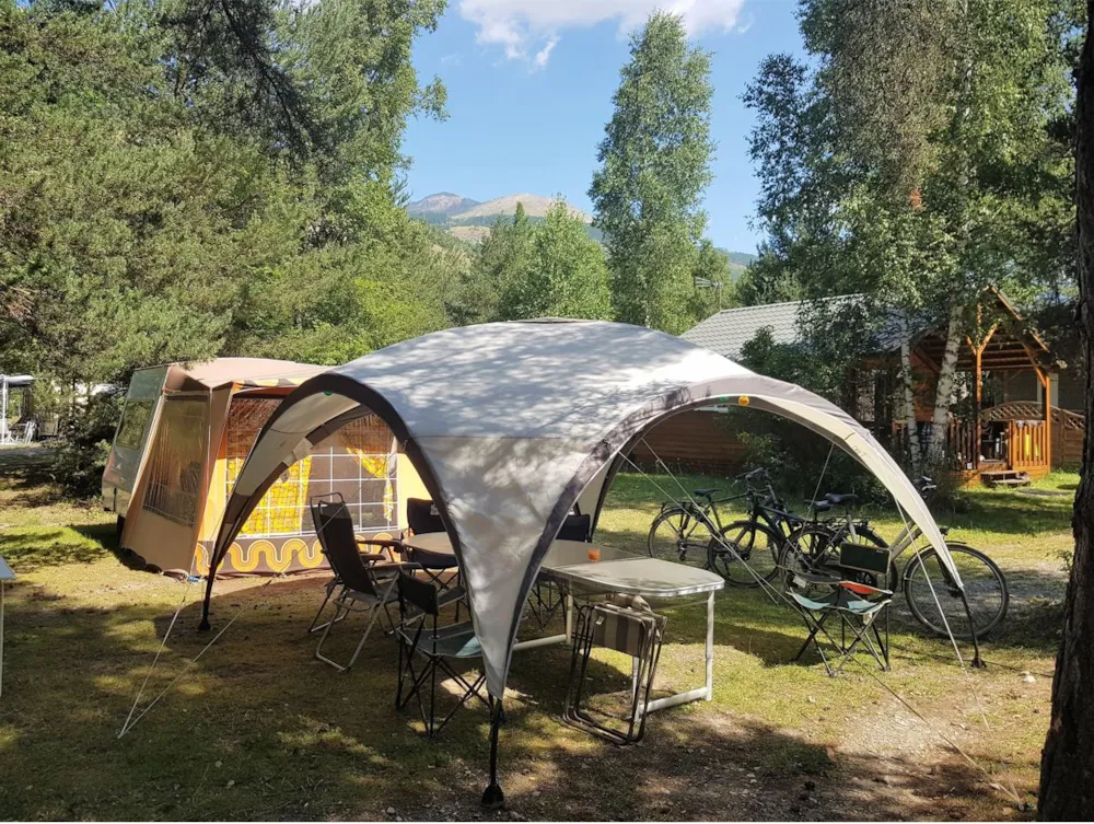 Standardstellplatz: Alle unsere Stellplätze sind mindestens 80 m² groß. In unserem 4 Hektar großen Park können Sie Ihren Stellplatz im Schatten oder in der Sonne wählen? nach Süden ausgerichtet, bei Sonnenaufgang oder Sonnenuntergang? in der Nähe der sanitären Anlagen? in der Nähe des Schwimmbads? oder in der Ruhe? Auf jeden Fall haben Sie tagsüber einen 360°-Blick auf die Berge, und nachts werden Sie vom Fluss Durance, der am Campingplatz vorbeifließt, umgarnt...