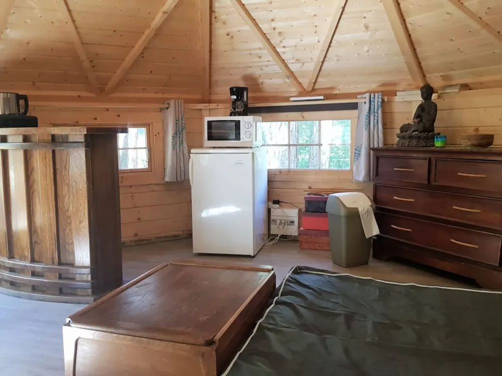 Entdecken Sie den Charme unserer finnischen Kotas. Wenn Sie eine Hüttenatmosphäre oder eine Zufluchtsatmosphäre suchen... hier sind Sie richtig... Mit einer anderen "abenteuerlichen" Dekoration für jedes unserer Kotas reisen Sie in das Herz von Lappland, Tibet, Kanada, Peru, Arizona, Kenia... oder, da unser Gebiet auch ein Land der Entdeckungen ist, in das Herz der Ecrins. Unter unseren ungewöhnlichen Unterkünften für 4 Personen werden Sie sich in Arizona, Kenia, Kanada oder in den Ecrins niederlassen. 4 Betten im Hauptraum, geschickt verteilt wie im Inventar angegeben. Diese Hütten sind nicht an die Wasserversorgung angeschlossen und haben daher keine sanitären Einrichtungen, obwohl es in der Nähe kollektive sanitäre Einrichtungen gibt. Schlafgelegenheit : - Arizona: 1 Bett 140×190 + 2 Etagenbetten 80×190 - Kanada: 1 Bett 140×190 + 2 Etagenbetten 80×190 - Ecrins: 2 Rollbetten 80×190 + 2 Etagenbetten 80×190 - Kenia: 1 Bett 140×190 + 2 Betten 80×190. Das Bettzeug hat einen thailändischen Lattenrost und eine Futonmatratze Gemeinden : - Innen: kleine Küchenzeile mit Kühlschrank, Mikrowelle, Gasherd, Kaffeemaschine... und natürlich allem notwendigen Geschirr. - Draußen: Sie können sich auf Ihrer privaten Terrasse mit Gartenmöbeln entspannen.