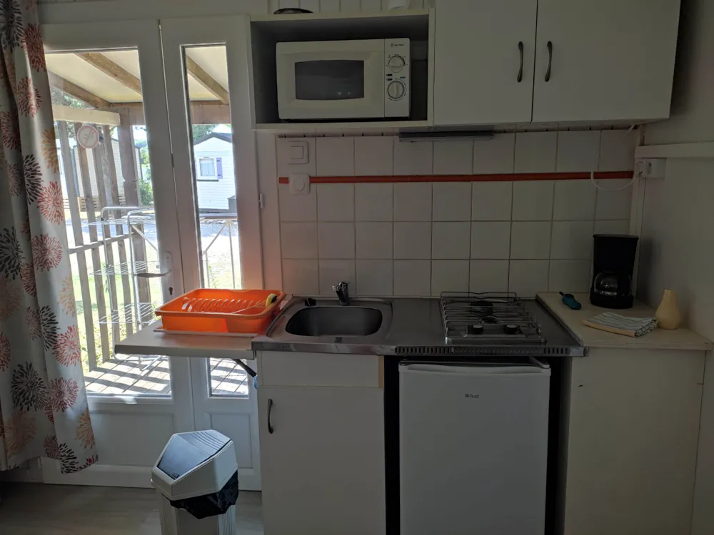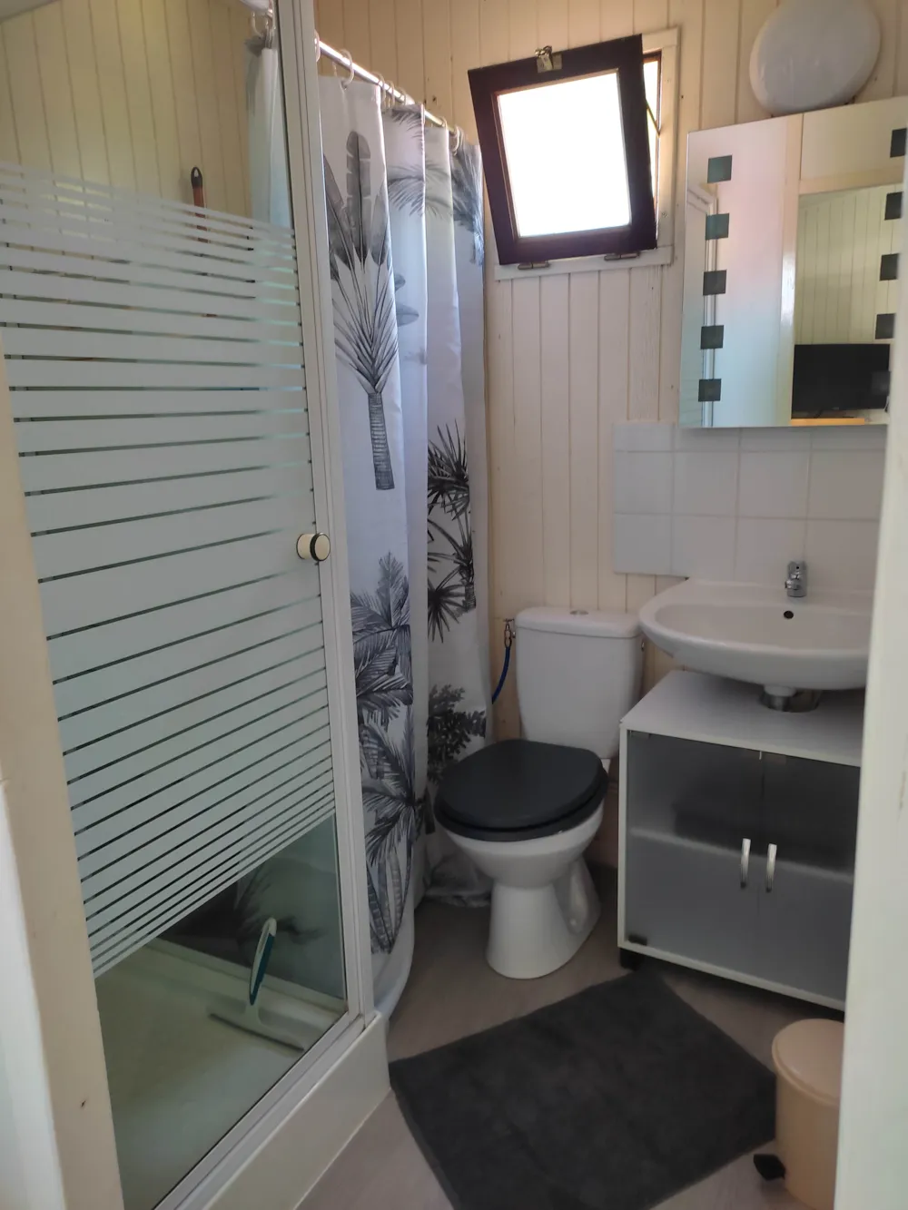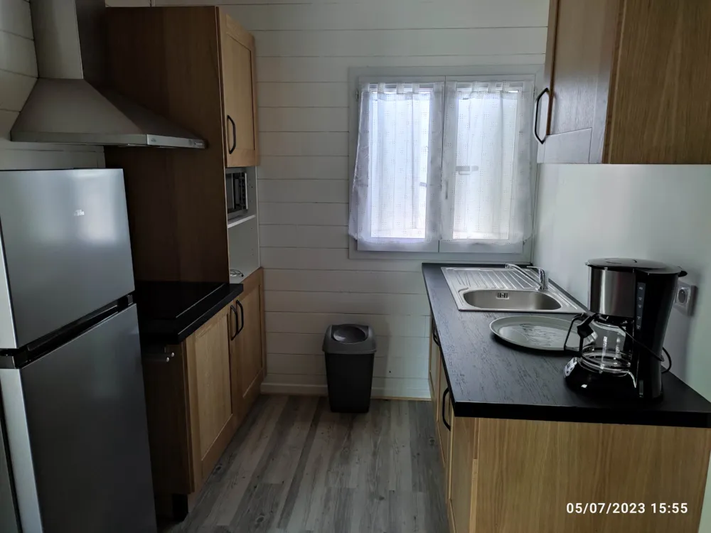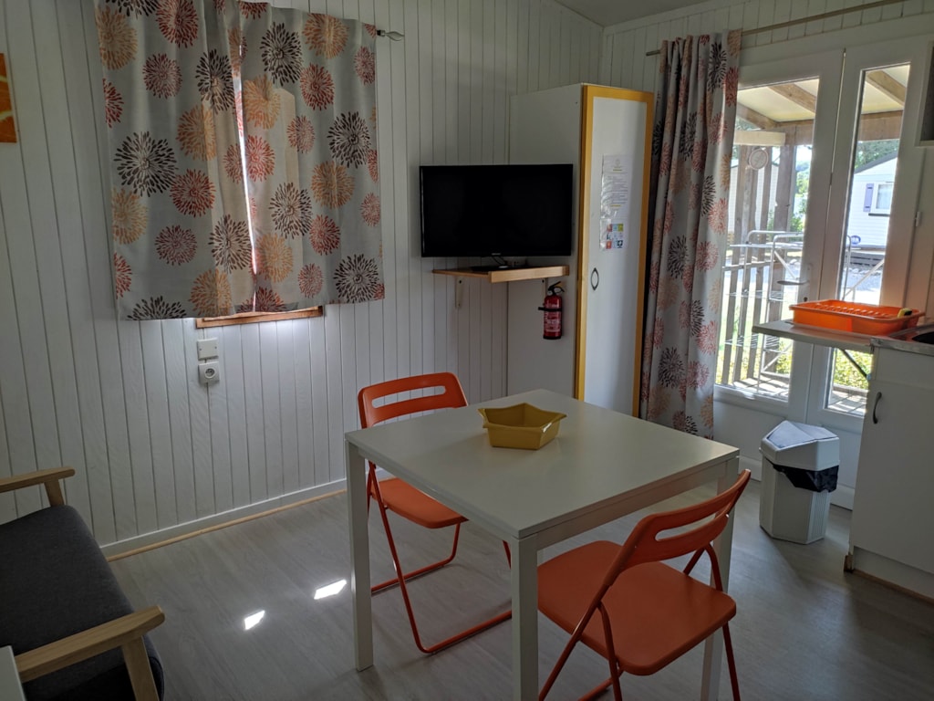 Camping l'Olivier ***, nur einen Steinwurf von Anduze entfernt, freut sich, Ihnen sein FRAMBOISE-Chalet für 4 Personen, Eco Range, mit 2 Schlafzimmern anbieten zu können ohne Klimaanlage und ohne Heizung.