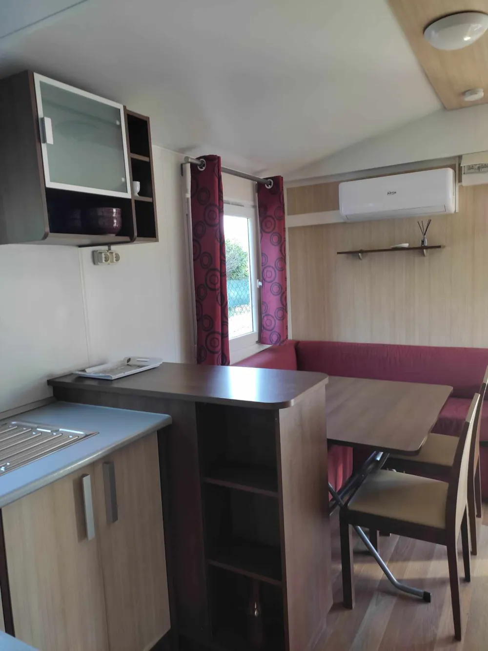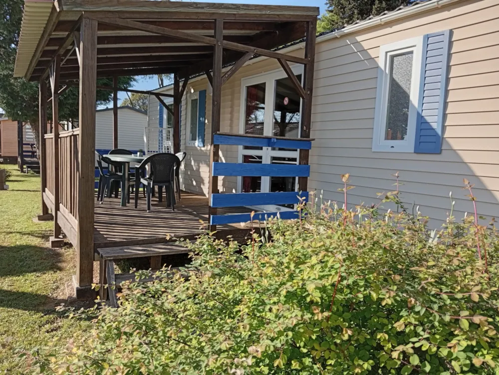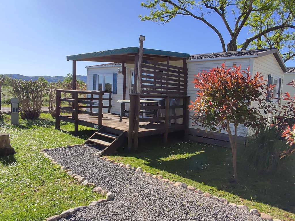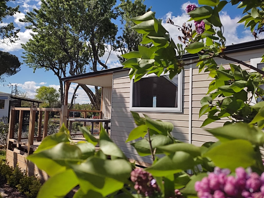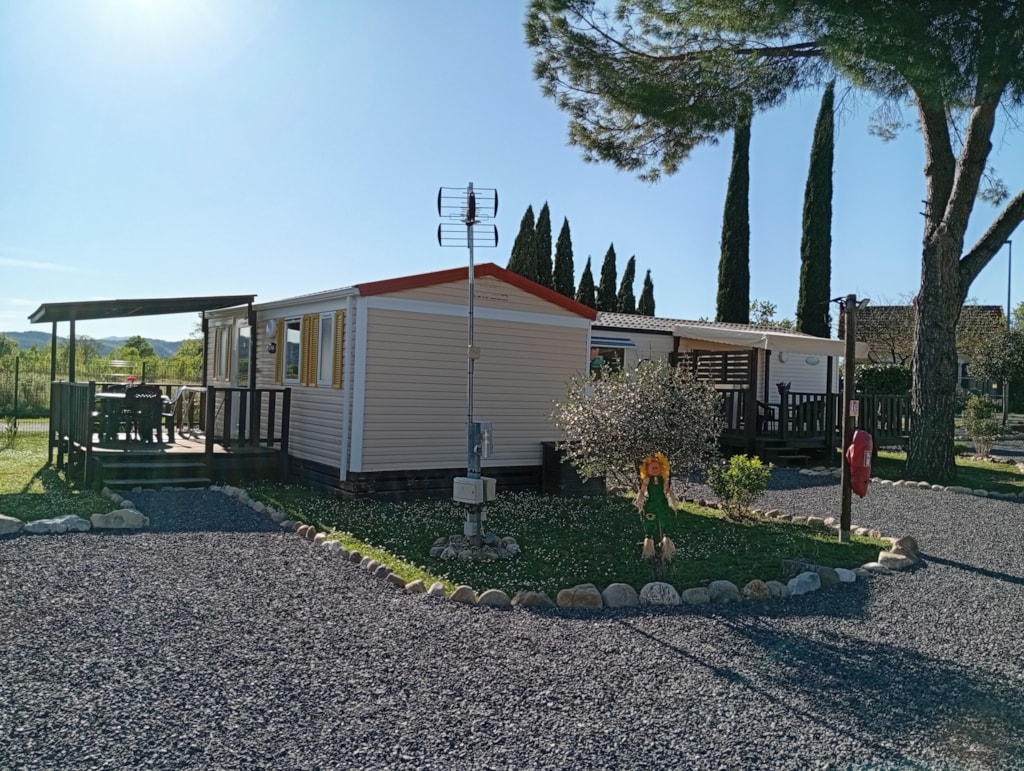 Camping l'Olivier ***, nur einen Steinwurf von Anduze entfernt, freut sich, Ihnen sein Mobilheim "Laurier" für 6 Personen der Comfort-Reihe mit 3 Schlafzimmern und Klimaanlage anbieten zu können