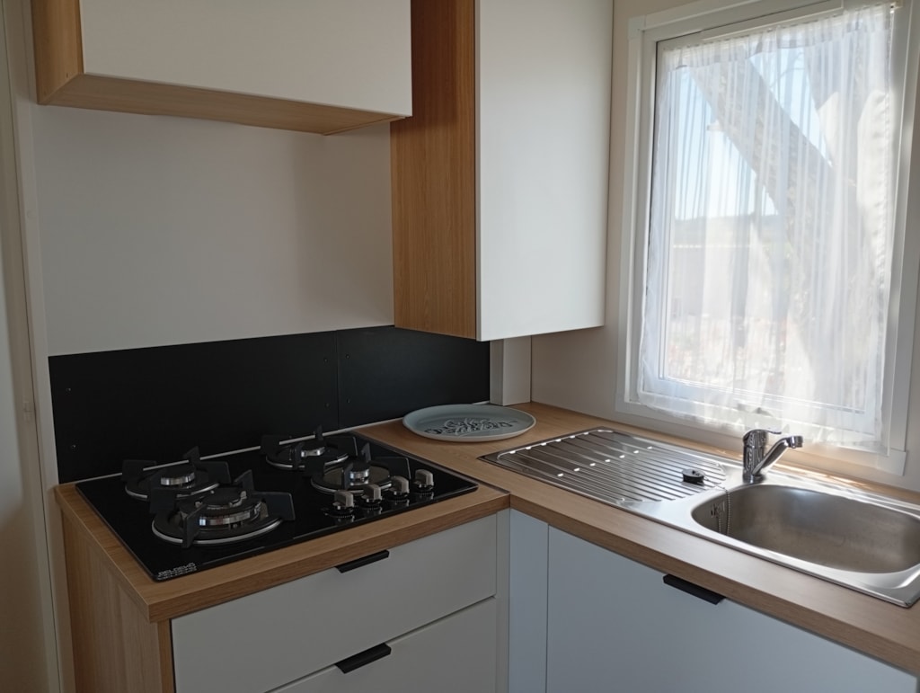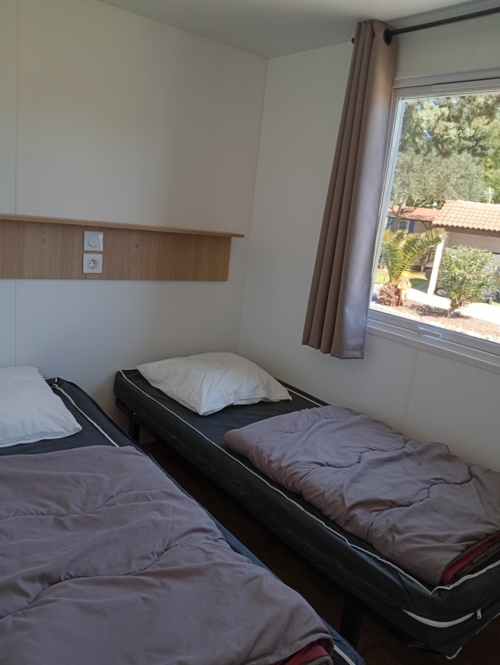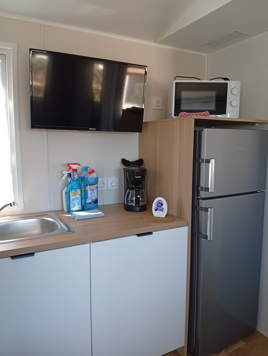 Camping l'Olivier ***, nur einen Steinwurf von Anduze entfernt, freut sich, Ihnen seine Mobilheime für 6 Personen der Comfort-Reihe mit 3 Schlafzimmern und Klimaanlage anbieten zu können