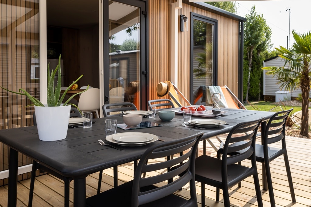 Neu für MOBILHEIM TRIBU XXL 2023: 2 Unterkünfte mit Verbindungsterrasse, mit 5 Schlafzimmern für 10 bis 12 Personen Große Familie ? Treffen Sie sich mit Freunden? Cousins? Es gibt viele mögliche Gründe, sich für das XXL-Tribe-Mobilheim zu entscheiden! Wenn Sie sich für dieses Modell entscheiden: 5 Schlafzimmer, 2 Badezimmer, 2 Toiletten, 2 Wohnzimmer, 2 voll ausgestattete Küchen, individueller Gasgrill UND VOR ALLEM 1 Terrasse von mehr als 30 m² mit Gartenmöbeln für 10 Personen, um Ihre Zusammenkünfte zu erleichtern! 1 Schlafzimmer mit QUEEN-Size-Bett 160 x 200 cm 1 Geschirrspüler 1 einzelne Plancha