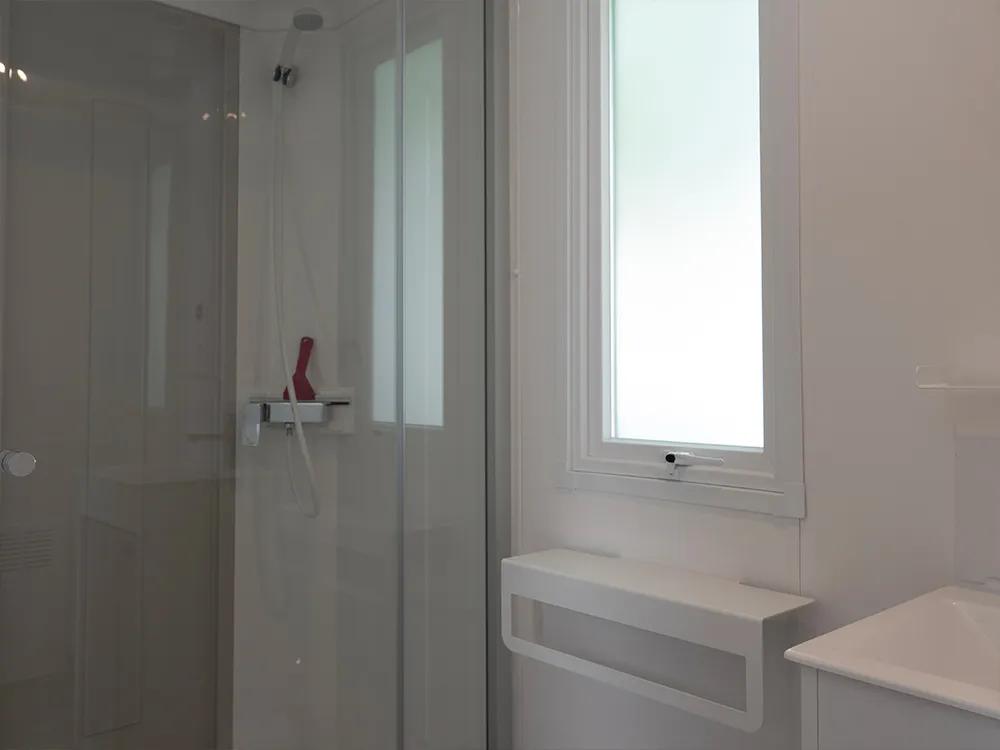 - Privates Sanitärgebäude mit WC, Dusche und Küche