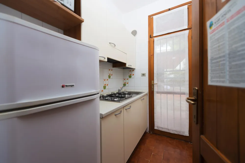 Monolocale con letto matrimoniale , piccolo angolo cottura, divano letto singolo, doccia, wc, bidet, acqua calda e fredda