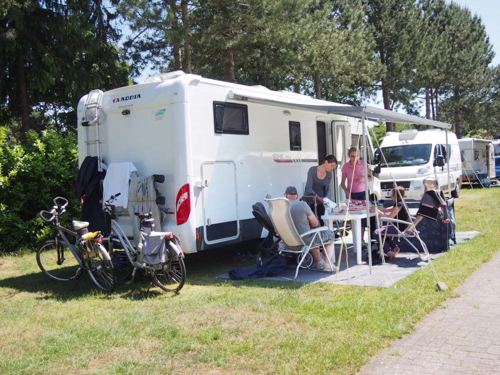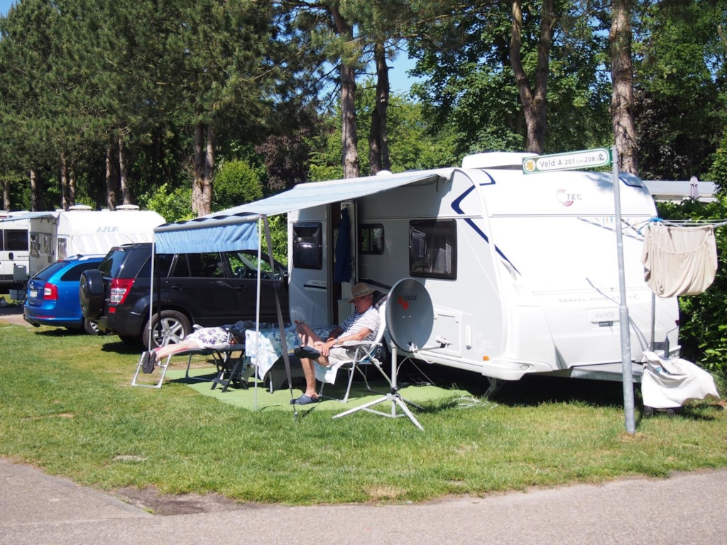 Platz für Zelt mit Auto oder Wohnwagen mit Auto, oder ein Wohnmobil. 2 Personen und Elektrizität sind einbegriffen.