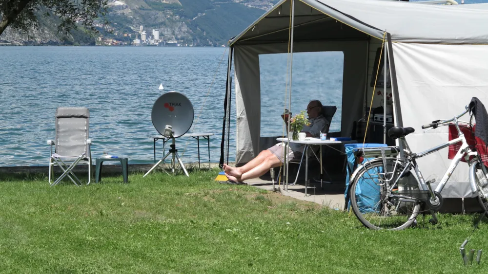 Nettes Personal, tolle Bar und Restaurante mit Seeblick, Liegewiese mit Liegestühle für jeden , von jedem Stellplatz aus Seeblick, saubere Sanitäranlagen die häufig gereinigt werden, Nähe zu Iseo, guter Ausgangspunkt um die Gegend und den See zu erkunden,
