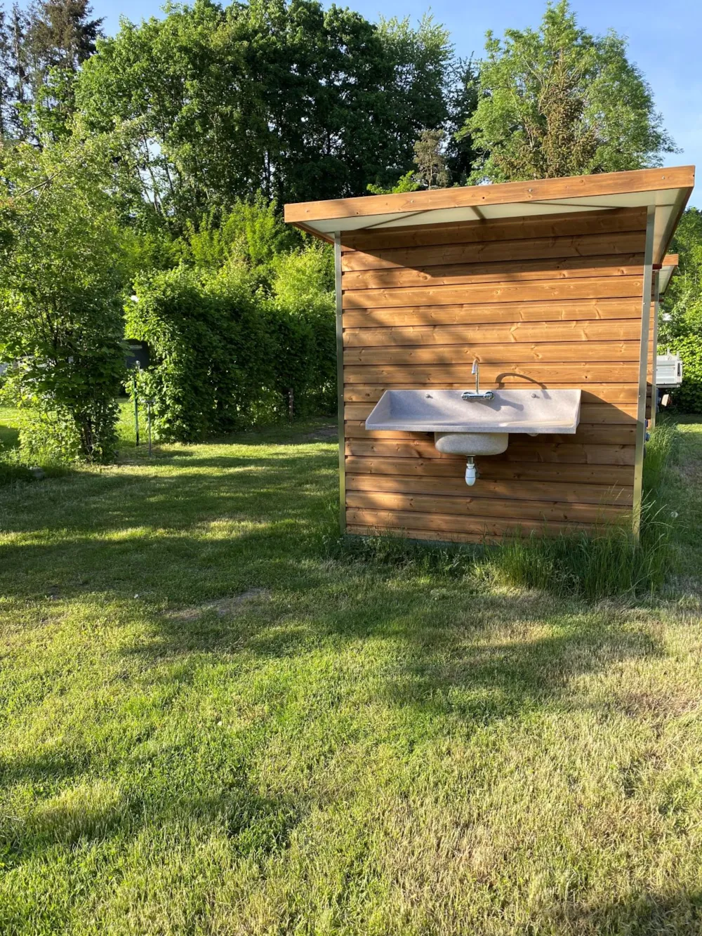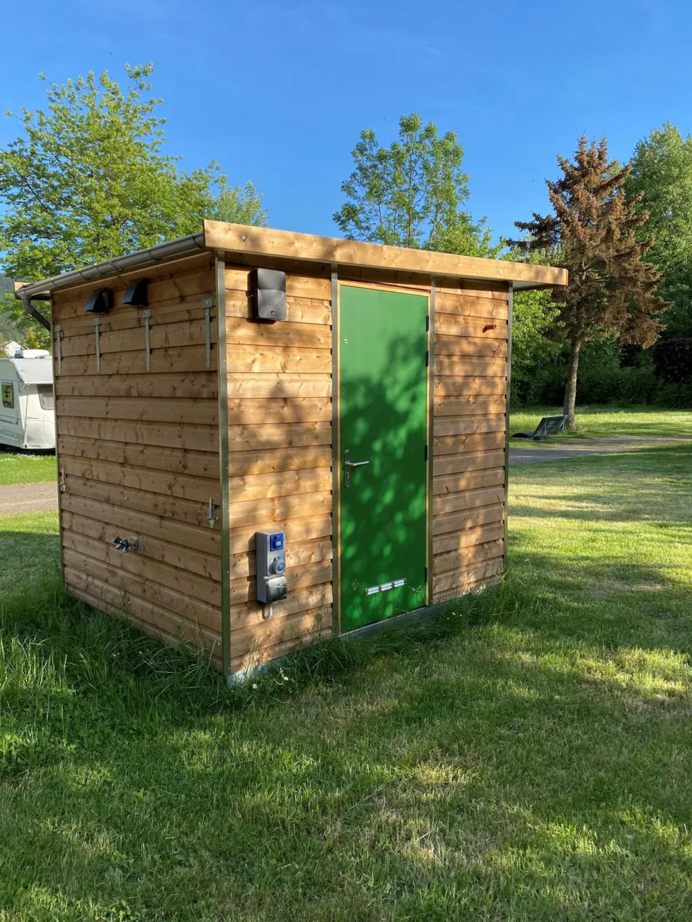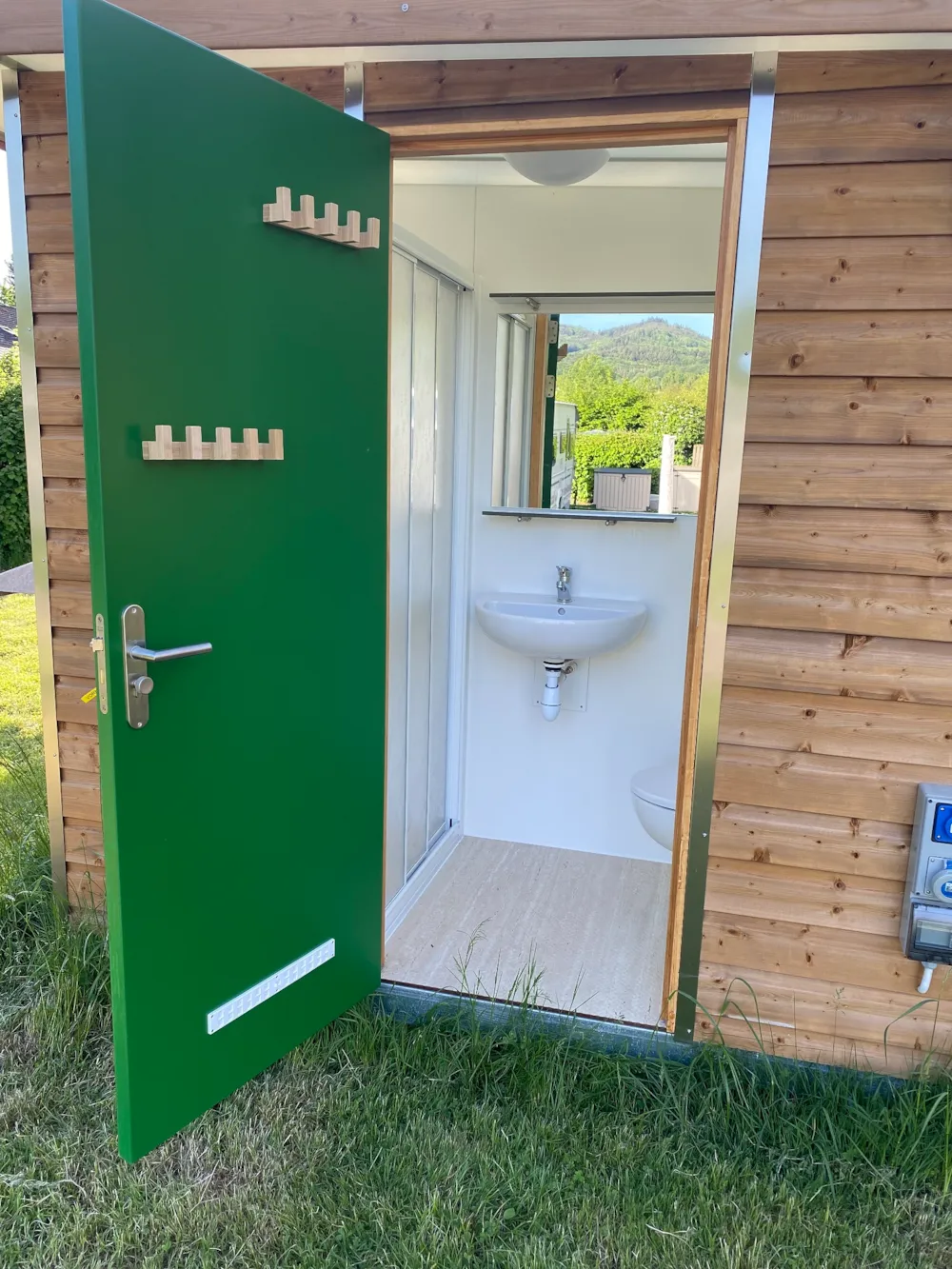 Ein eigenes, privates Bad direkt neben dem Wohnwagen /Wohnmobil/Camper oder Zelt mit kurzen Wegen, was sich vor allem nachts und mit Kindern auszahlt. Eine hohe Privatsphäre ist hier garantiert!