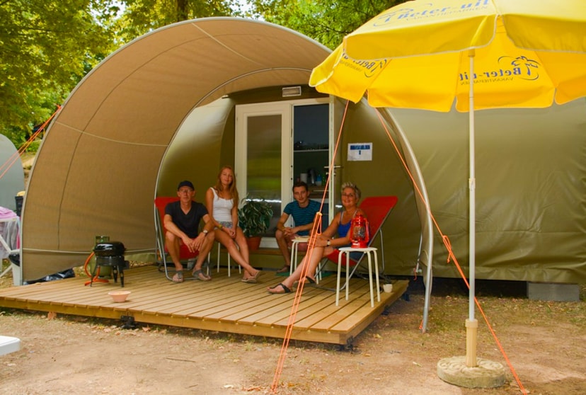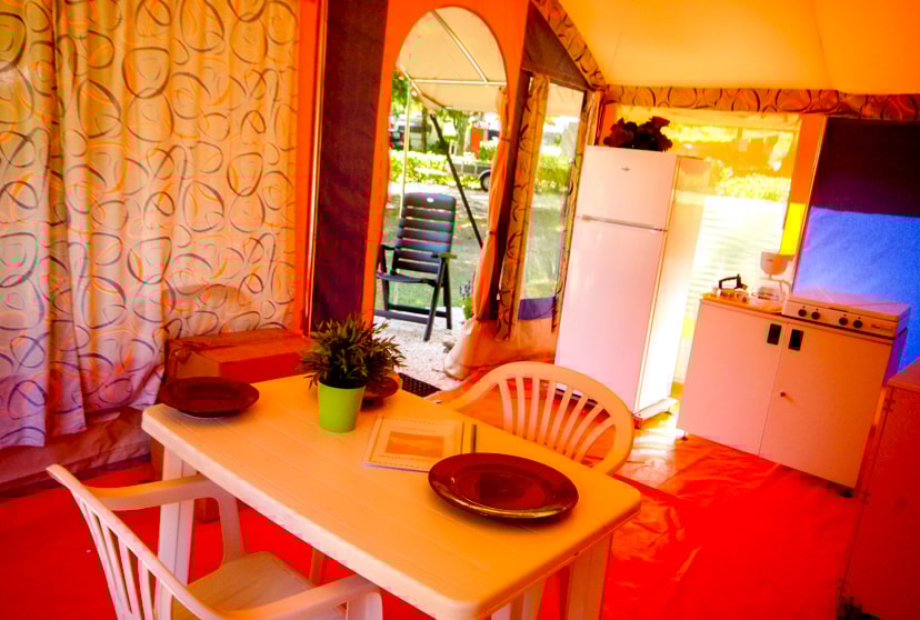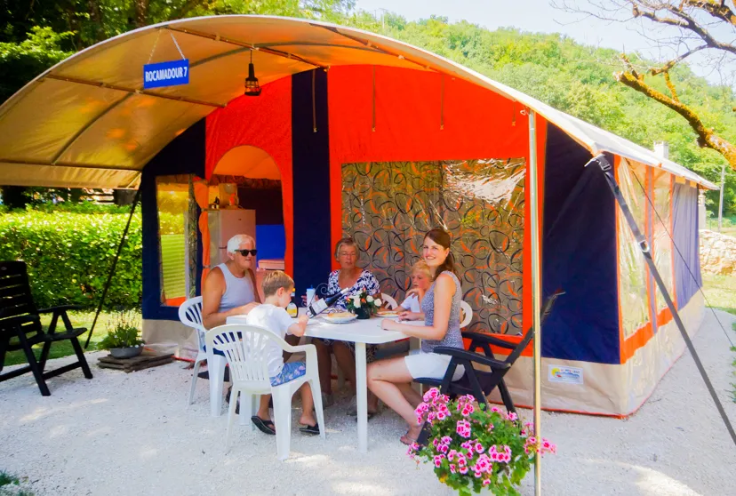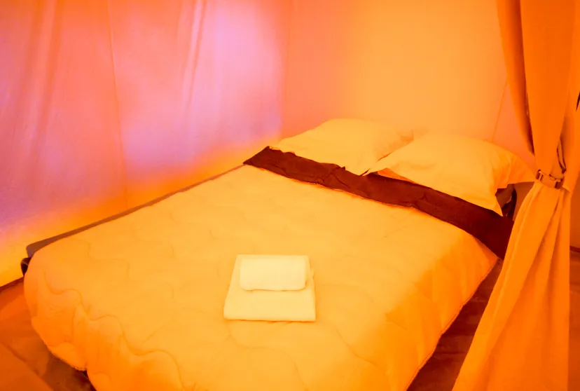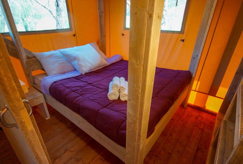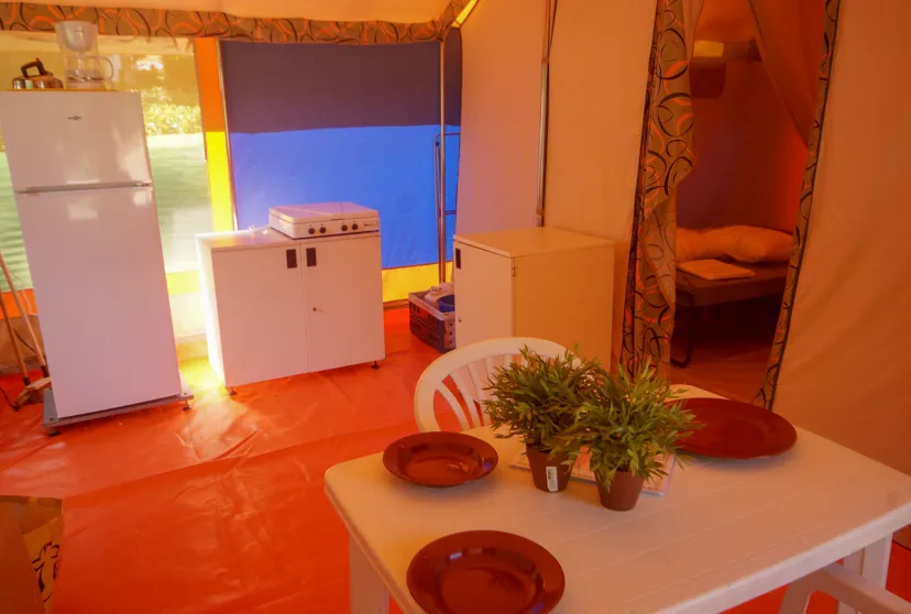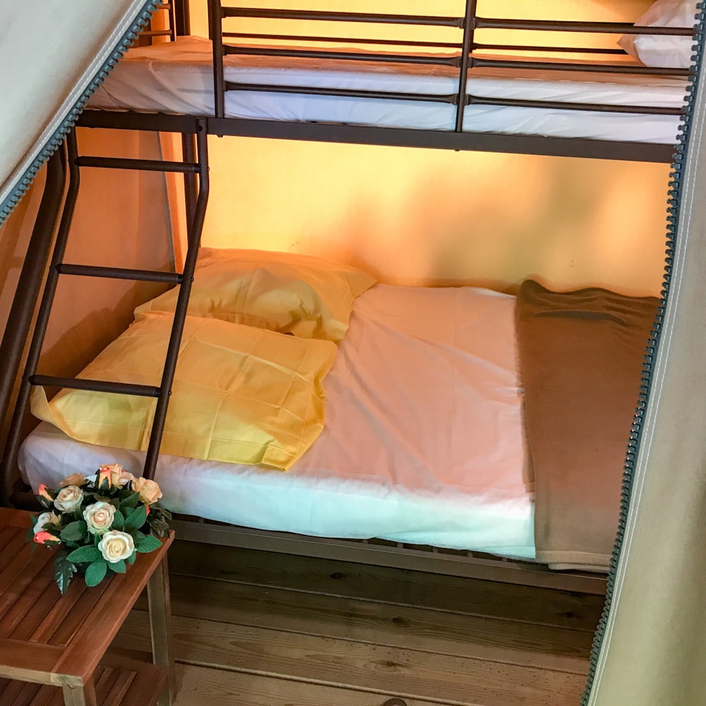 Komfortables Glampingzelt mit Platz für acht Personen.