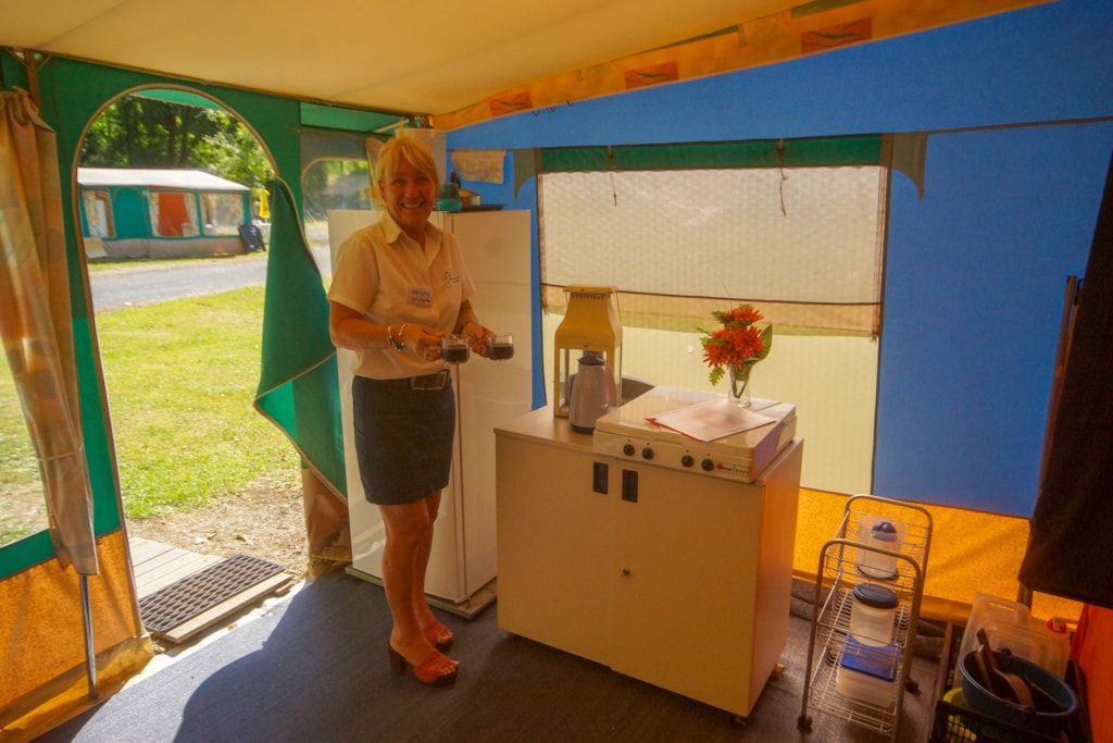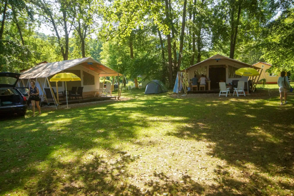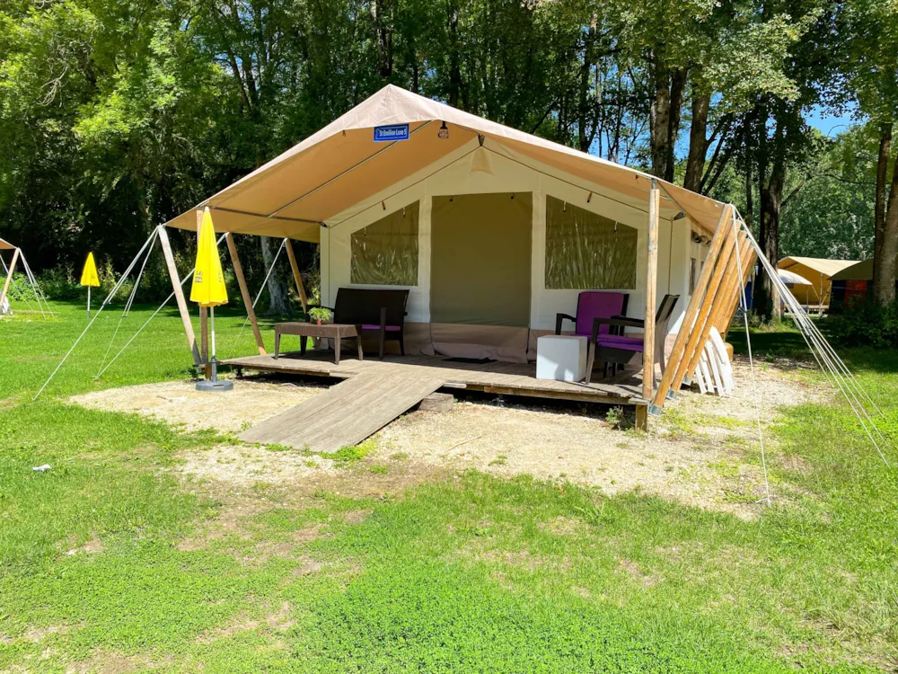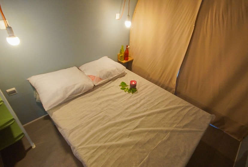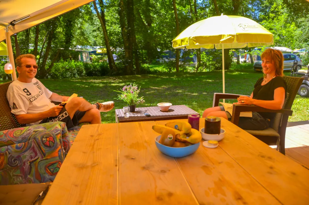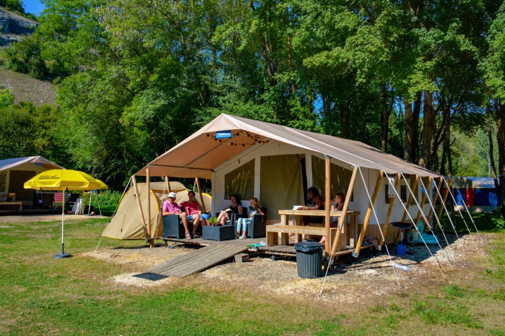 Komfortables Glampingzelt mit Platz für acht Personen.