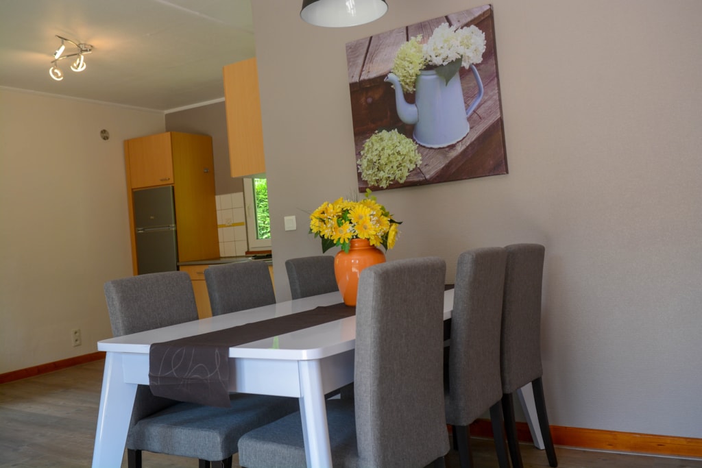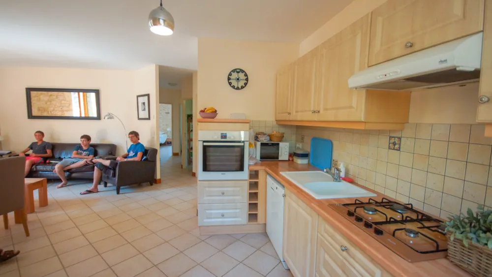 In diesem wunderschön renovierten Landhaus mit eigenem Garten lässt es sich wunderbar entspannen und bietet ausreichend Platz für 8 Personen. Neben einem großzügigen und modernen Wohnzimmer mit offener Küche (mit Geschirrspüler) verfügt dieses typisch französische Haus über drei Schlafzimmer. Ein Schlafzimmer mit zwei Boxspring-Einzelbetten und zwei Schlafzimmer mit einem Etagenbett mit Ausziehbett. Das Haus, Die Alte Mühle, verfügt über ein separates WC und ein Badezimmer mit Badewanne.Sie können sich auf den zwei großen Außenterrassen und dem großzügigen Balkon vergnügen.