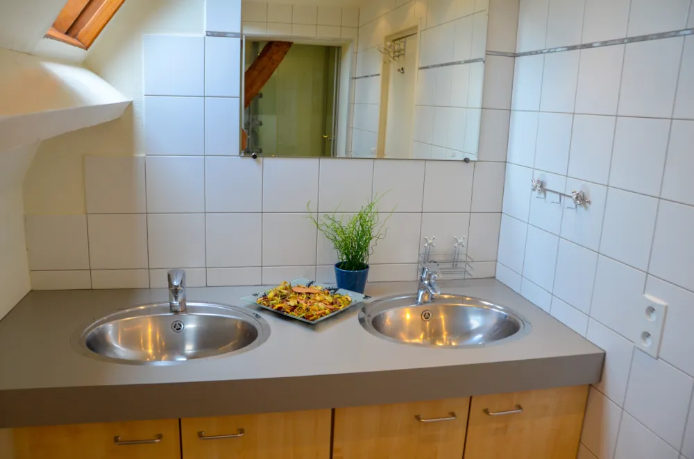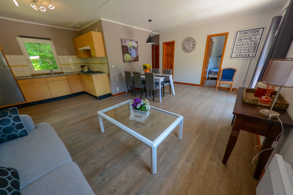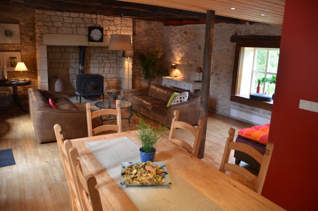Nach Hause kommen, aber in Frankreich in diesem sehr geräumigen, stilvollen und authentischen Bauernhaus. Das Wohnzimmer ist geschmackvoll und zeitgemäß eingerichtet. Vom Wohnzimmer aus betreten Sie die Terrasse, wo Sie sich entspannen und die schöne Aussicht genießen können. Die moderne offene Küche ist komplett ausgestattet und verfügt über einen großzügigen Essbereich. Es gibt zwei Schlafzimmer im zweiten Stock. Ein sehr geräumiges Schlafzimmer mit 2 Einzel-Boxspringbetten, "schlafen wie zu Hause". Und ein Schlafzimmer mit einem Etagenbett und einem Ausziehbett.Das geräumige Badezimmer hat eine Dusche und ein Doppelwaschbecken. Es gibt eine separate Toilette.
