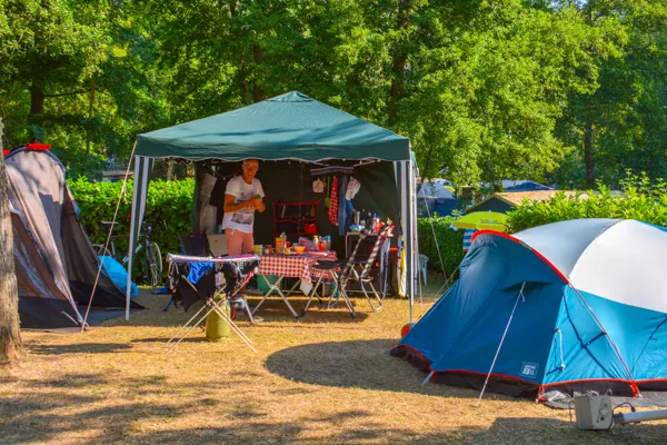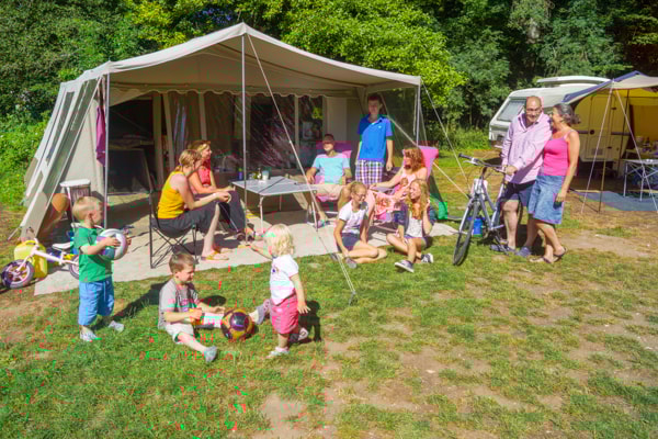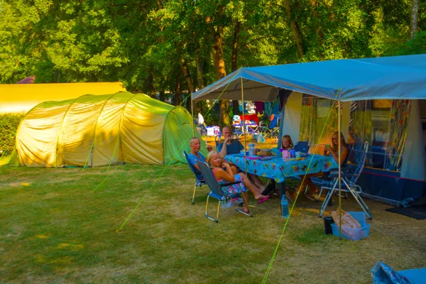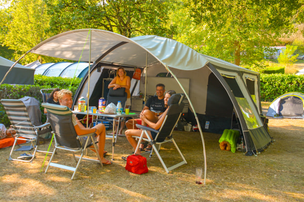 Bungalowzelt mit großem Vorzelt und Platz für 6 Personen.