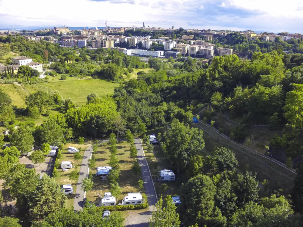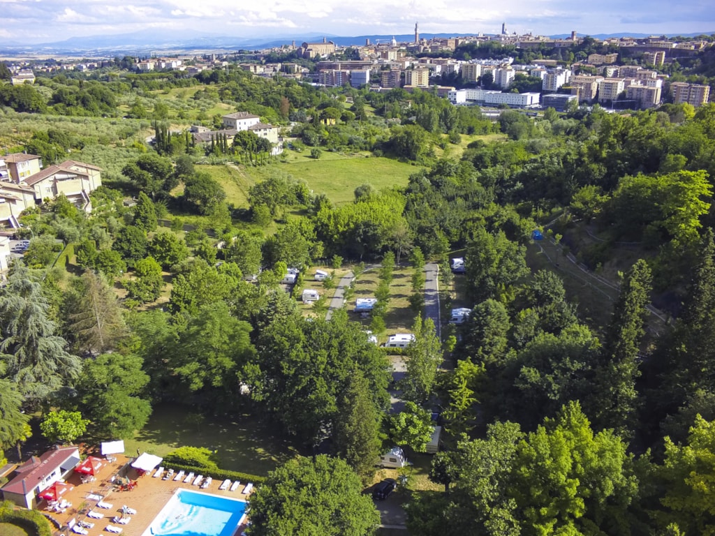 Sehr vielfältiges Platzangebot, gut verteilt auf einem terrassenartigen Gelände am Rande von Siena; sehr sauberer und großer Pool, um sich bei großer Hitze abzukühlen; gute Busanbindung an die Innenstadt
