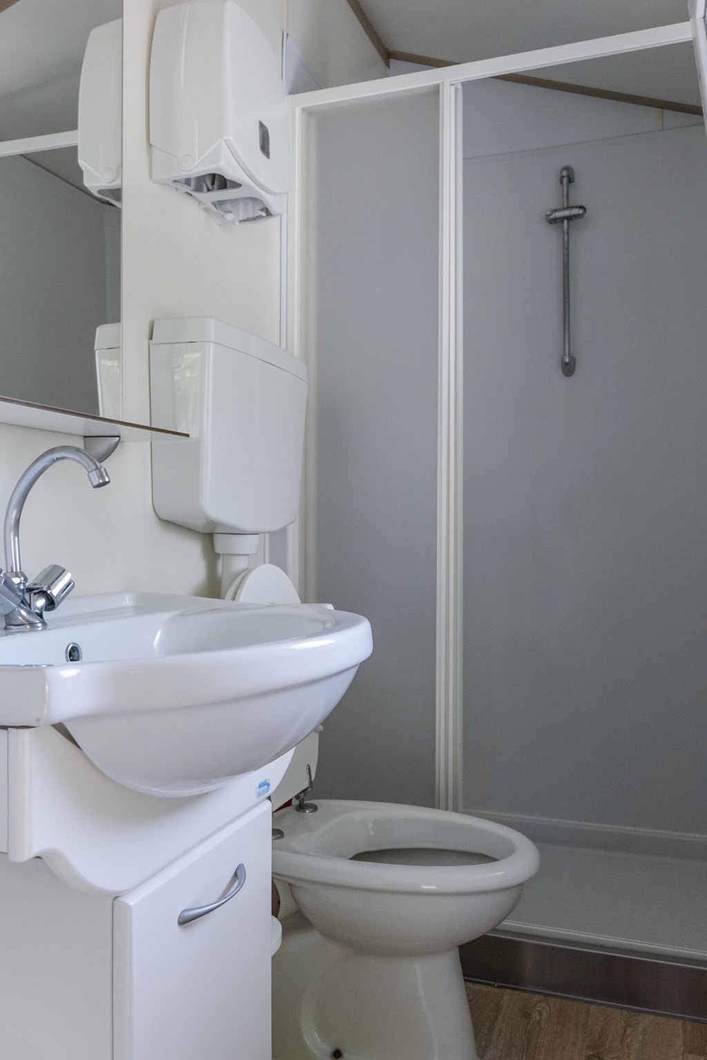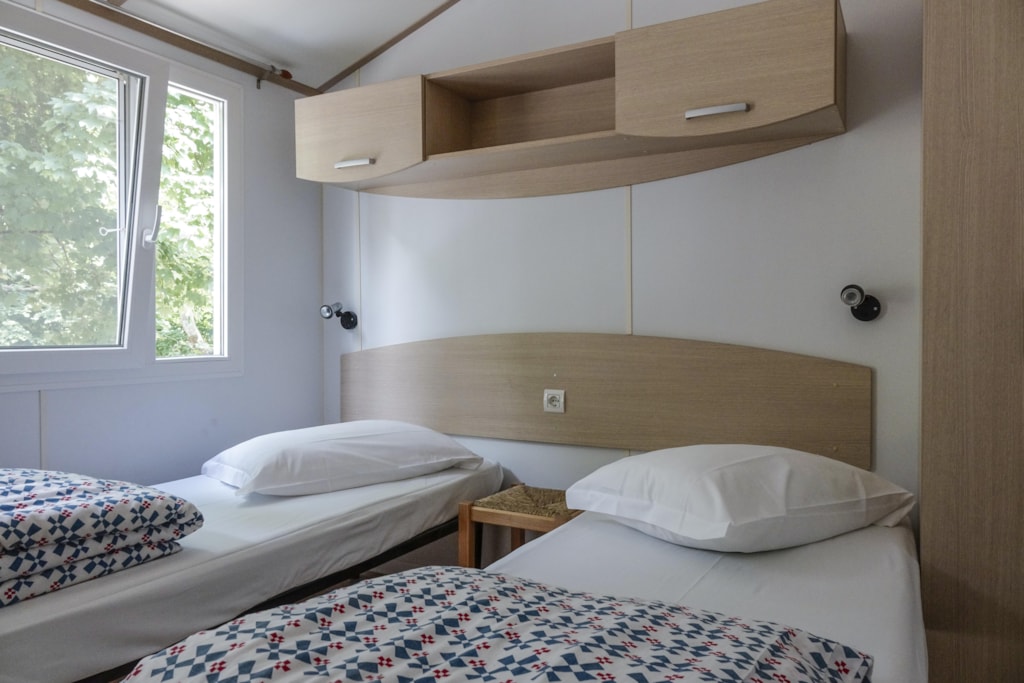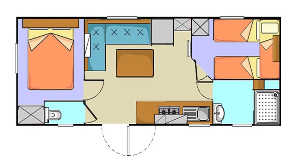La casa mobile è composto da una camera matrimoniale, una camera con 2 letti singoli, un bagno e doccia, un soggiorno con angolo cottura e un divano letto per una persona. Forniamo la biancheria per i letti e un piccolo asiugamano (50x70 cm) Check out entro le 11.00