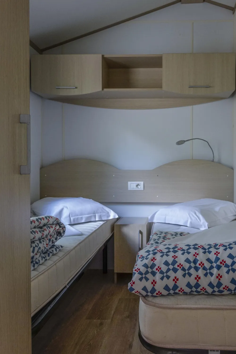 Casa mobile con bagno privato è composto da una camera con 2 letti singoli (che volendo potete unire al momento del arrivo) un piccolo frigorifero e un bagno privato con la doccia. Forniamo la biancheria per i letti e un piccolo asiugamano (50x70 cm) Check out prima delle 11.00