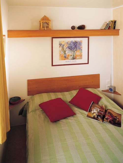 29 m² - 1 Schlafzimmer mit Doppelbett (140 x 190), 1 Schlafzimmer mit zwei Betten (80 x 190), 1 Schlafsofa im Wohnzimmer, umwandelbar in ein Doppelbett (130 x 190), Bettdecken und Kissen, Duschbad, separates WC, ausgestattete Küche , Kühlschrank, Mikrowelle, Geschirr, Heizung, Gartenmöbel.