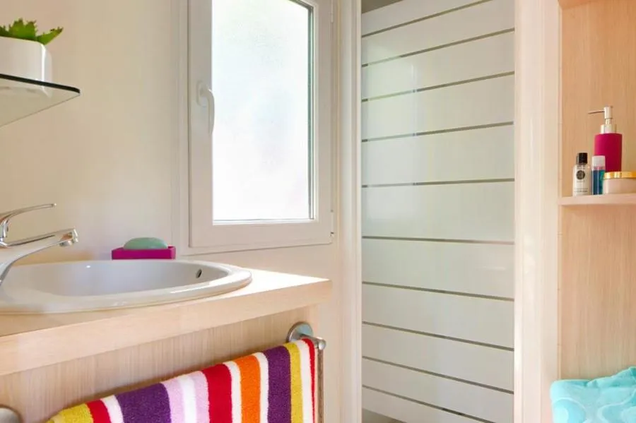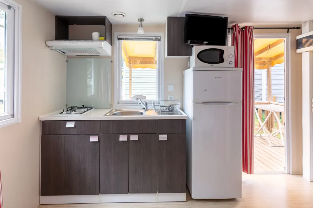 Lou Cabasson schlägt Ihnen dieses Mobil-Heim 4 Personen jeder Komfort vor, der funktional und geräumig ist. Einer Oberfläche 24m2 wird er der ideale Ort für Ihren Aufenthalt unter der Sonne von Bormes-les-Mimosas ( 83 ) sein. Mobilheim klimatisiert. Dimension: 6.4mx4m