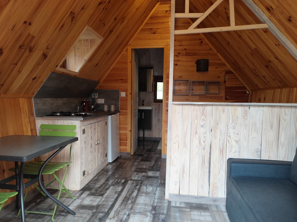cycliste, motard ,randonneurs ou autres, de passage dans notre belle région,venez découvrir notre tente perchée pour une a deux personnes composée d'une chambre à l’étage avec lit 2 places et au rdc coin cuisine + table