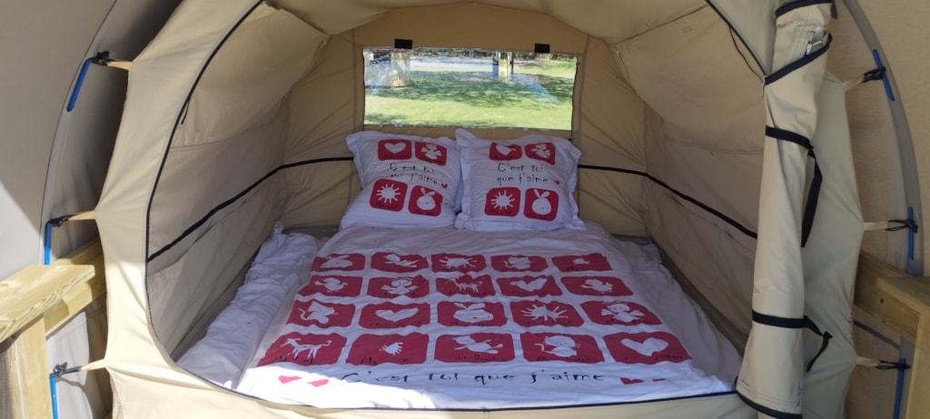 Das Wichtigste für Ihre Wanderetappe: 3 weiche Einzelbetten, ein Tisch und Stühle zum Hinlegen, Rucksack und Schuhe, das ist eine Möglichkeit, leicht zu reisen! Dieser aus Holz gefertigte Kokon entlastet Sie vom Überflüssigen und lädt Sie ein, eine Nacht oder länger, um zum Wesentlichen zurückzukehren. Es wird Wanderfreunde und Naturliebhaber begeistern. Innen erwarten Sie 3 Einzelbetten. Außerhalb des Zimmers haben Sie eine Terrasse mit Essbereich und Liegestühlen. Komfortabel, die Robinson Step Cabana ist mit Steckdosen zum Aufladen Ihrer Geräte ausgestattet. Endlich legen wir uns hin und ruhen uns aus!