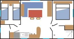La cuisine offre un accès direct à la terrasse, 2 portes fenêtres composent ce modèle et apportent de la luminosité aux pièces. Des rangements sont présents dans les chambres et le séjour pour plus de praticité.