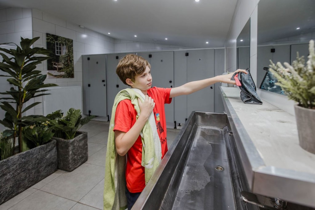 Die gemeinschaftlichen Sanitäranlagen waren nicht so schön. Das sollte lieber nach Geschlechtern getrennt sein.