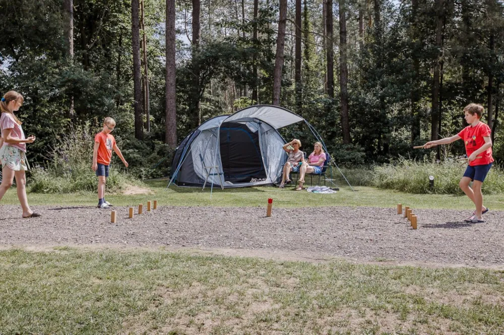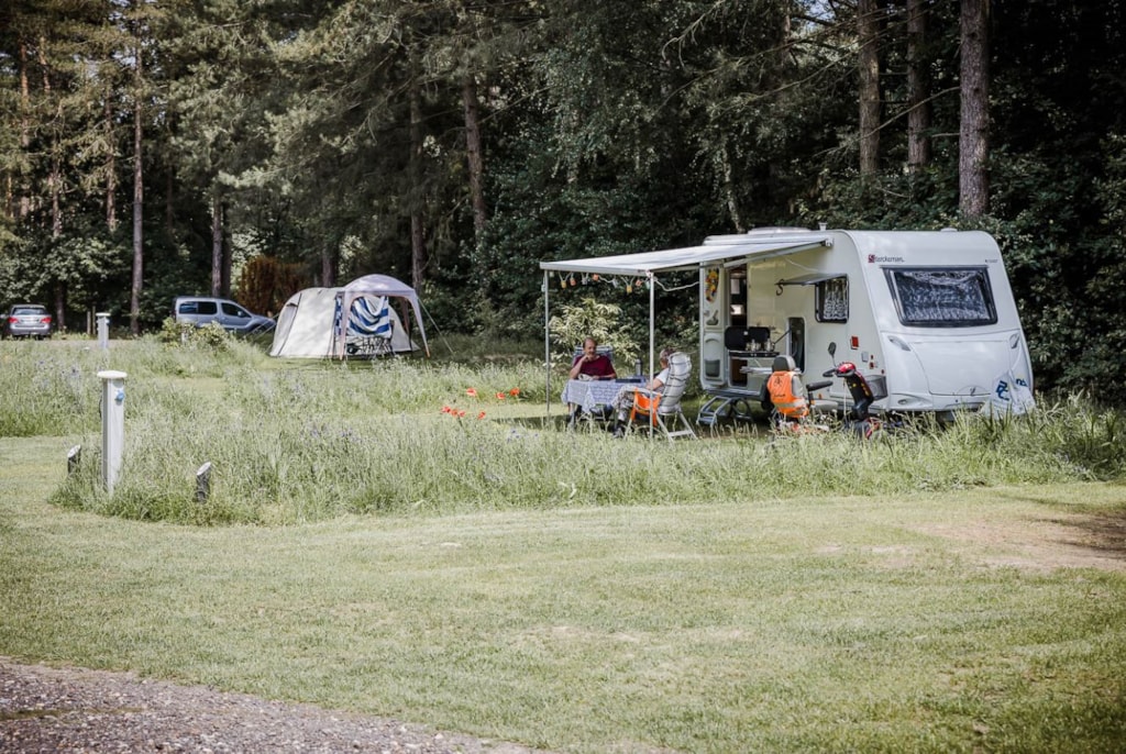 Kampeerplaats voor een tent of een caravan. De plaats is ruim opgezet waar ruimte is om de eigen auto op het perceel te parkeren. Er is 16a stroom op de plaats aanwezig.