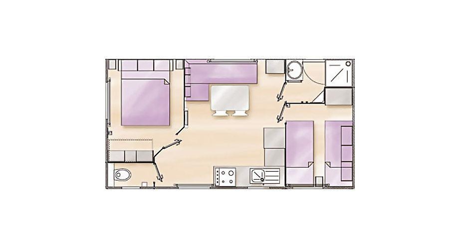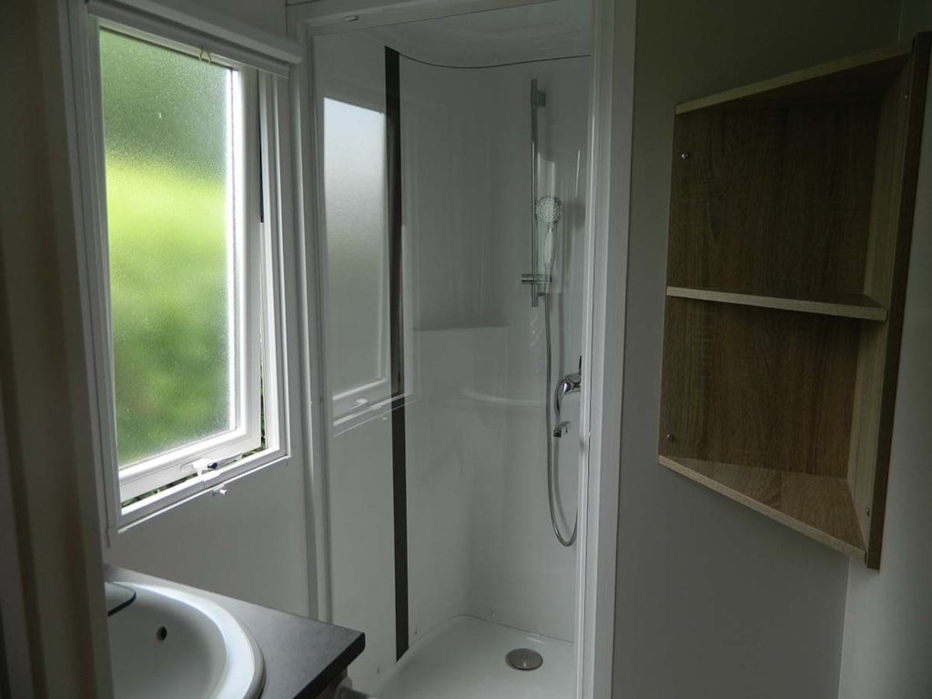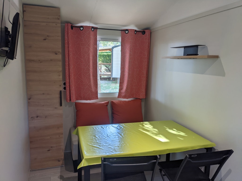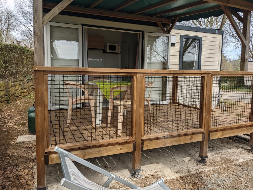 Neu , modernes voll ausgestattetes Mobilheim mit überdachter Terrasse, Gartenmöbel, 2 Liegestühl kostenloses WLAN, Fernseher
