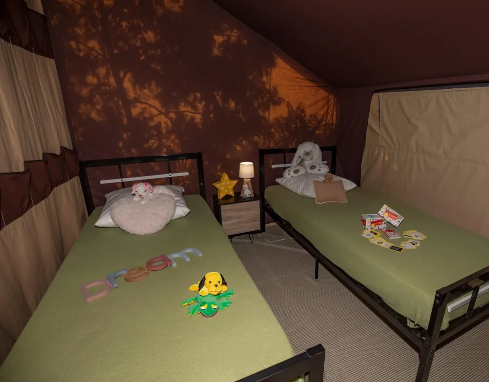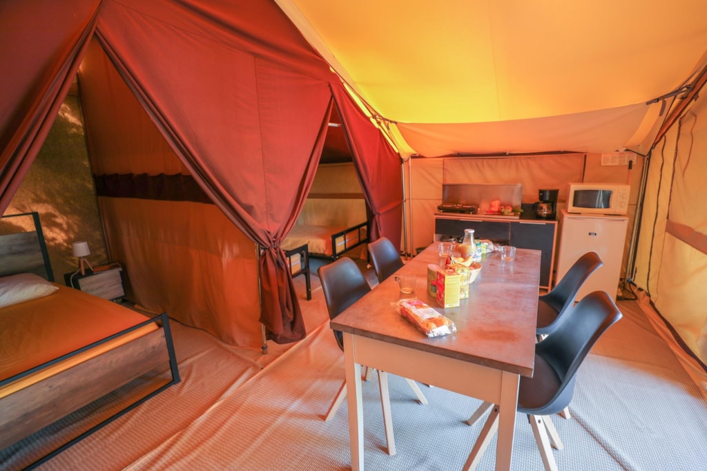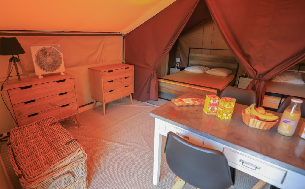 Zelt von 25 m2, bestehend aus zwei Schlafzimmern und einem Wohnzimmer a kitchenette.