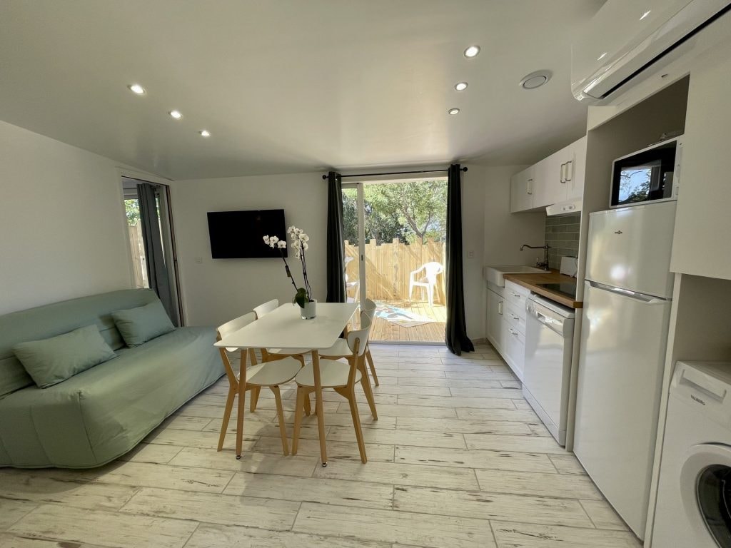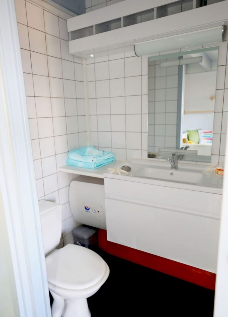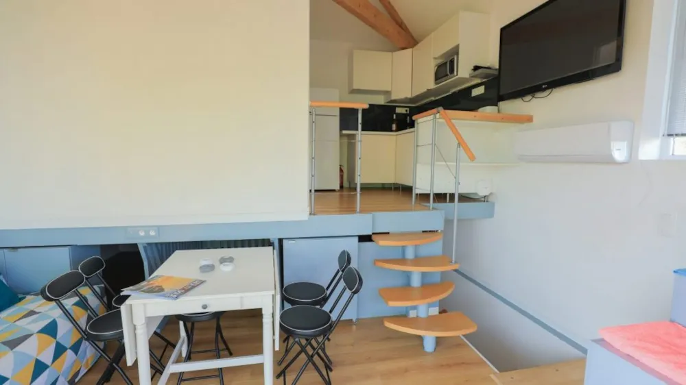 Es befindet sich im Haupthaus des Campingplatzes und besteht aus 1 einzigen Raum von 22m2 mit einem Schlafbereich, einer Küchenzeile und einem Badezimmer.