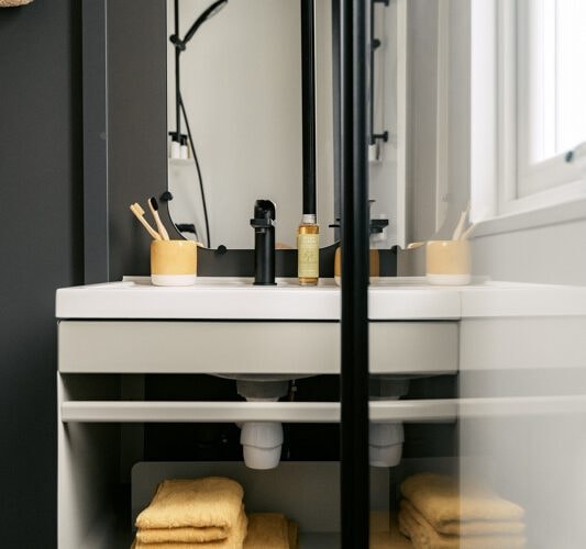 40 m2 große Wohnung mit zwei Schlafzimmern, einem geräumigen Wohnzimmer mit einer modernen, voll ausgestatteten Küche, einem Badezimmer mit Dusche und einem separaten WC.
