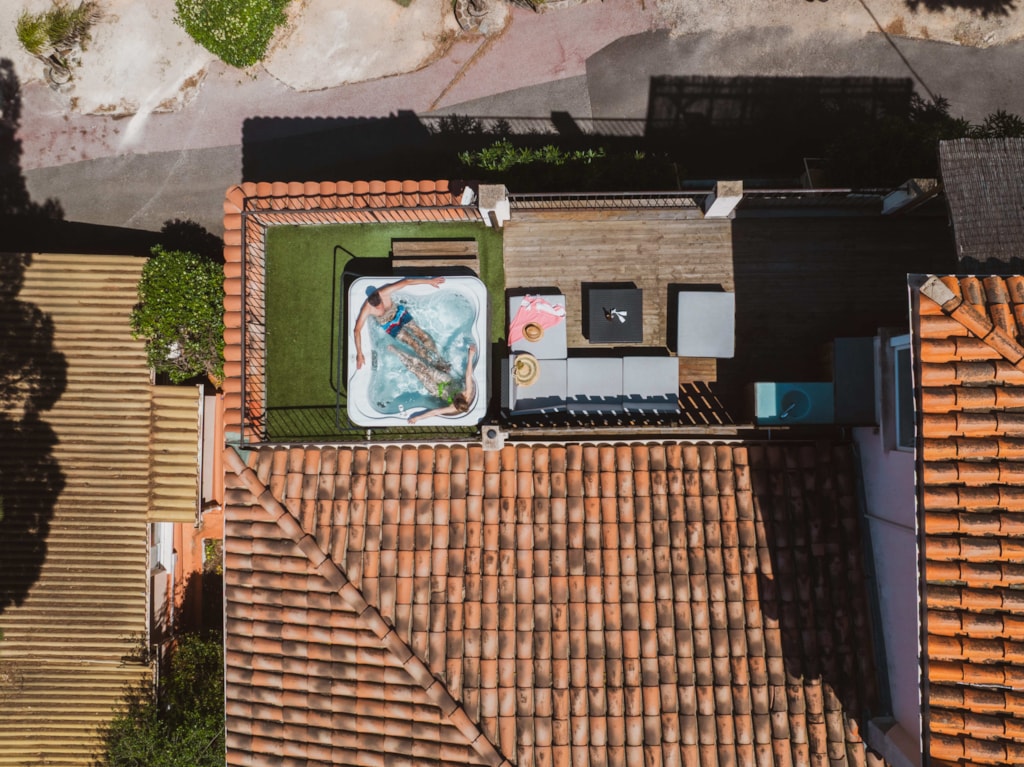 Es besteht aus einem Zimmer mit einem Elternbett und einem weiteren Zimmer mit zwei Einzelstockbetten. Sie verfügen über eine Küchenzeile mit einem Wohnzimmer und eine Terrasse mit privatem Whirlpool.