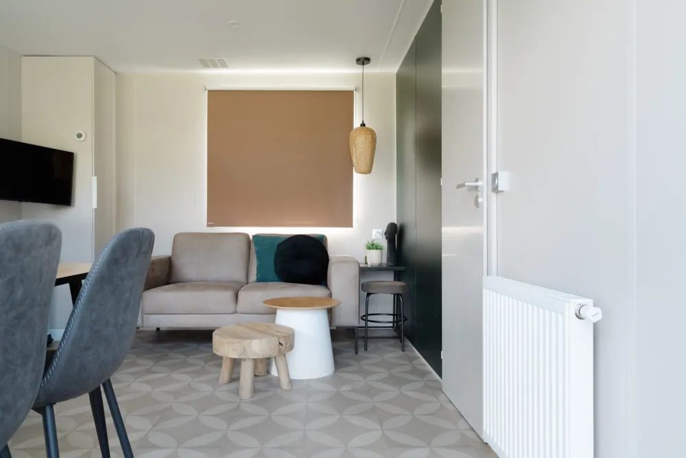 Draußen genießen Sie die ruhige Lage am Rande des Parks, in der Nähe des idyllischen Smokkelstrands. Im Wohnzimmer gibt es einen Flachbildfernseher und kostenloses WLAN. Die Unterkunft ist zentral beheizt und komplett rauchfrei.