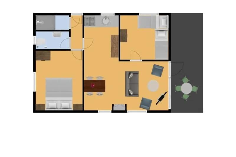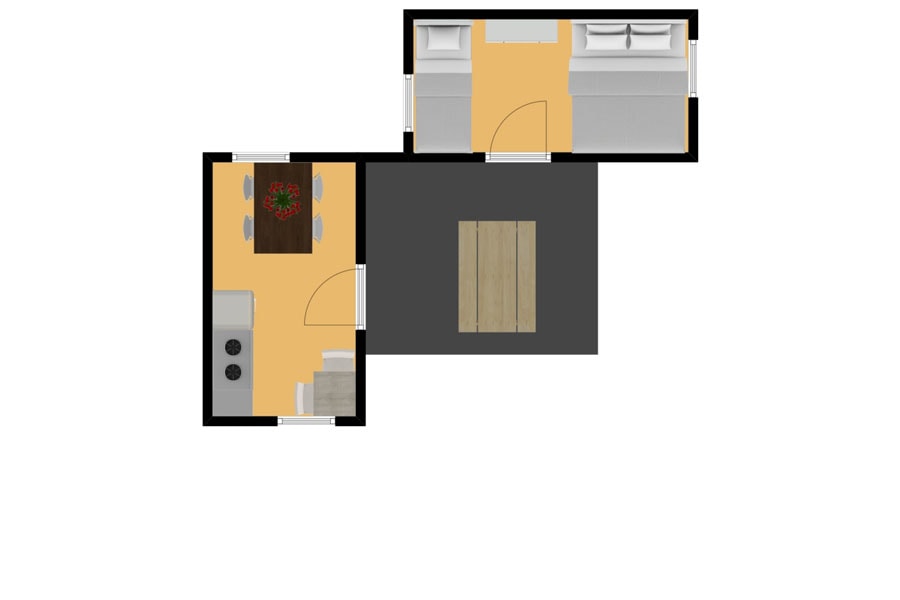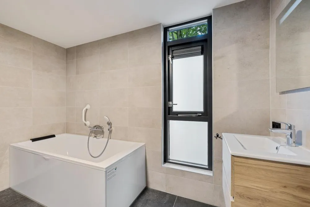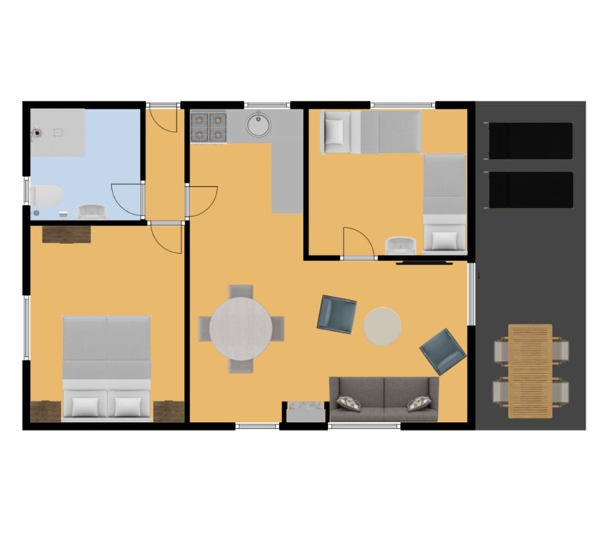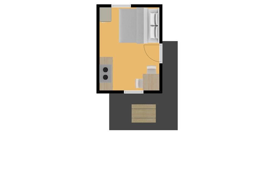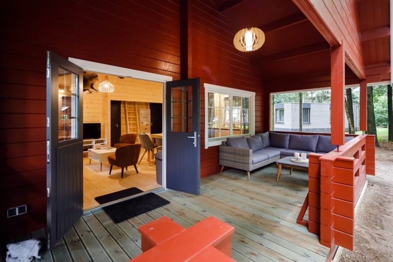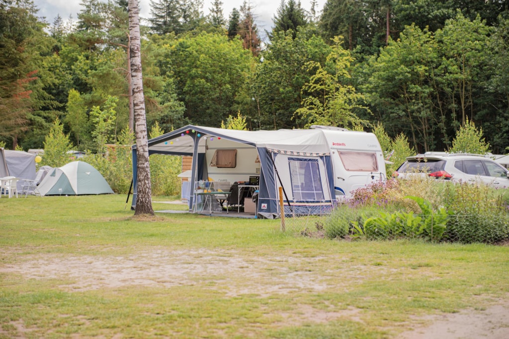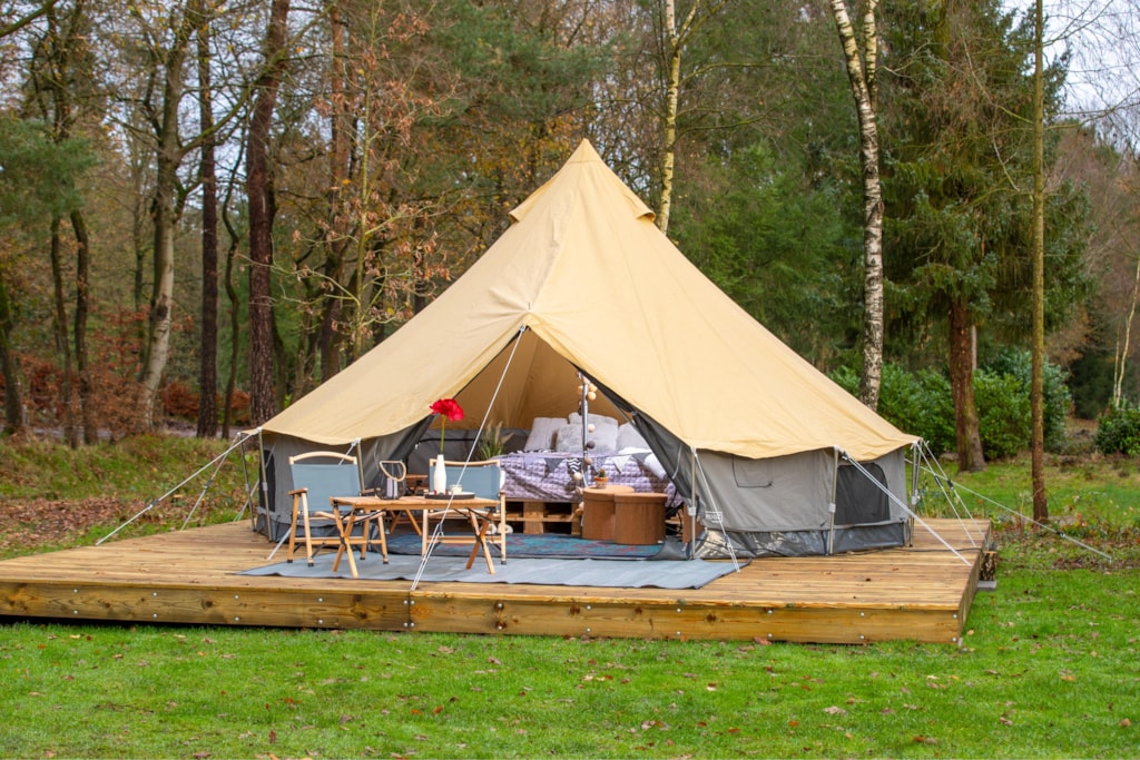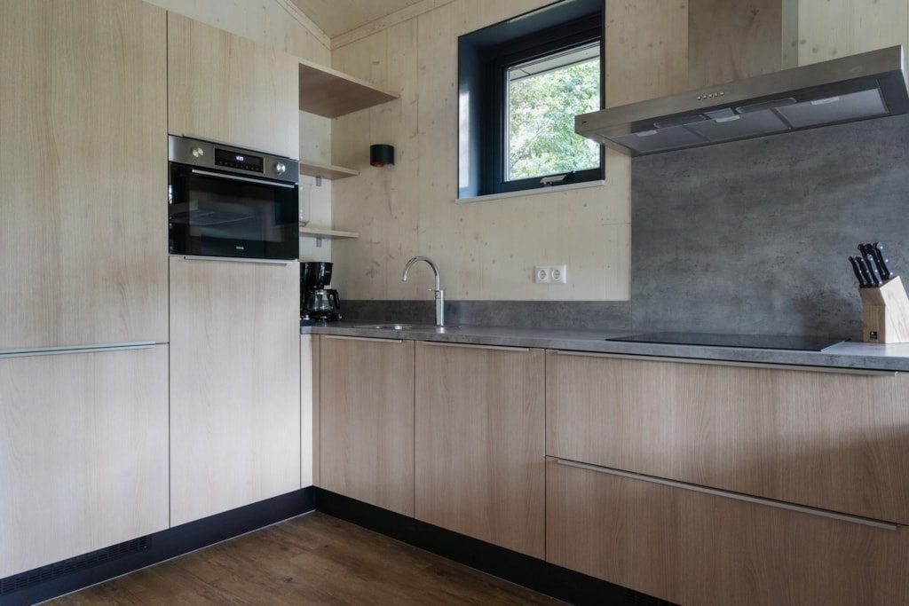 De tuin ligt op het zuiden en is voorzien van een overkapping en luxe tuinmeubilair. Je kan er tot laat in de avond van de Veluwse natuur genieten. De auto kun je bij de bungalow parkeren.