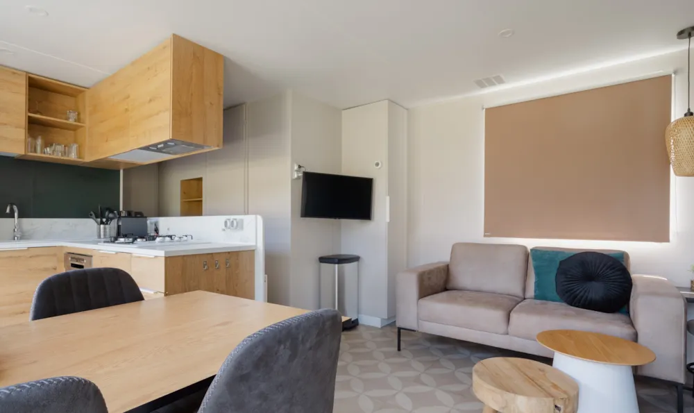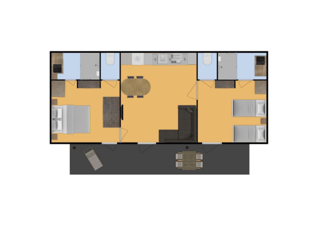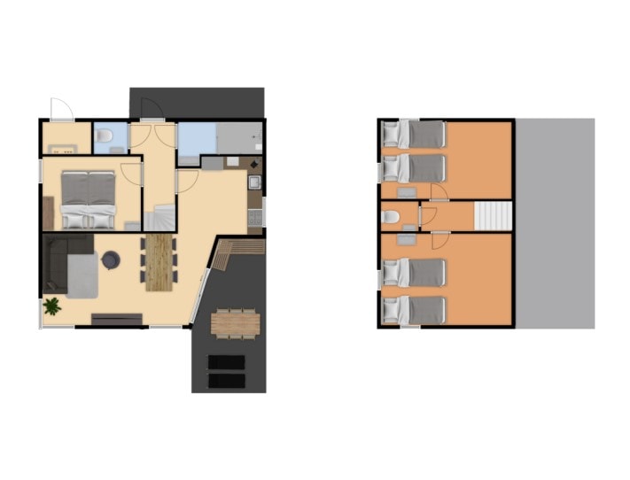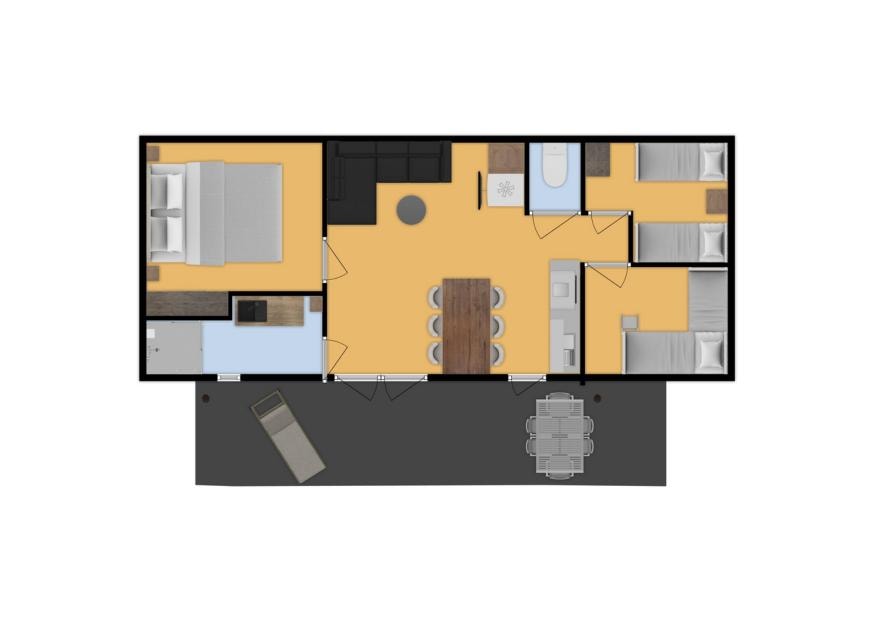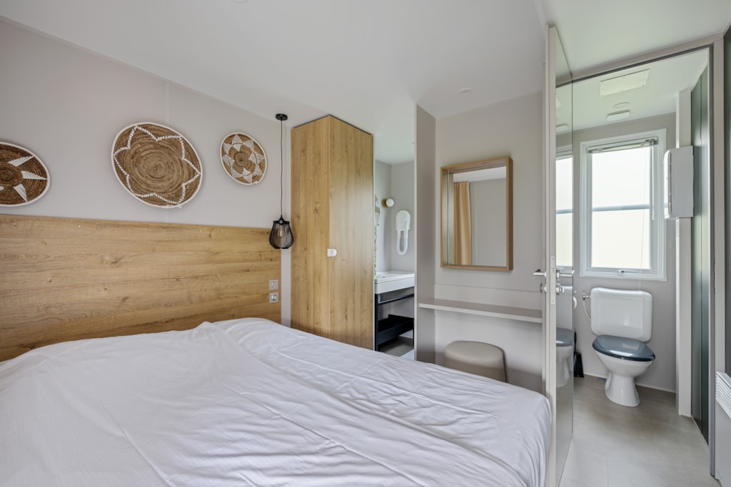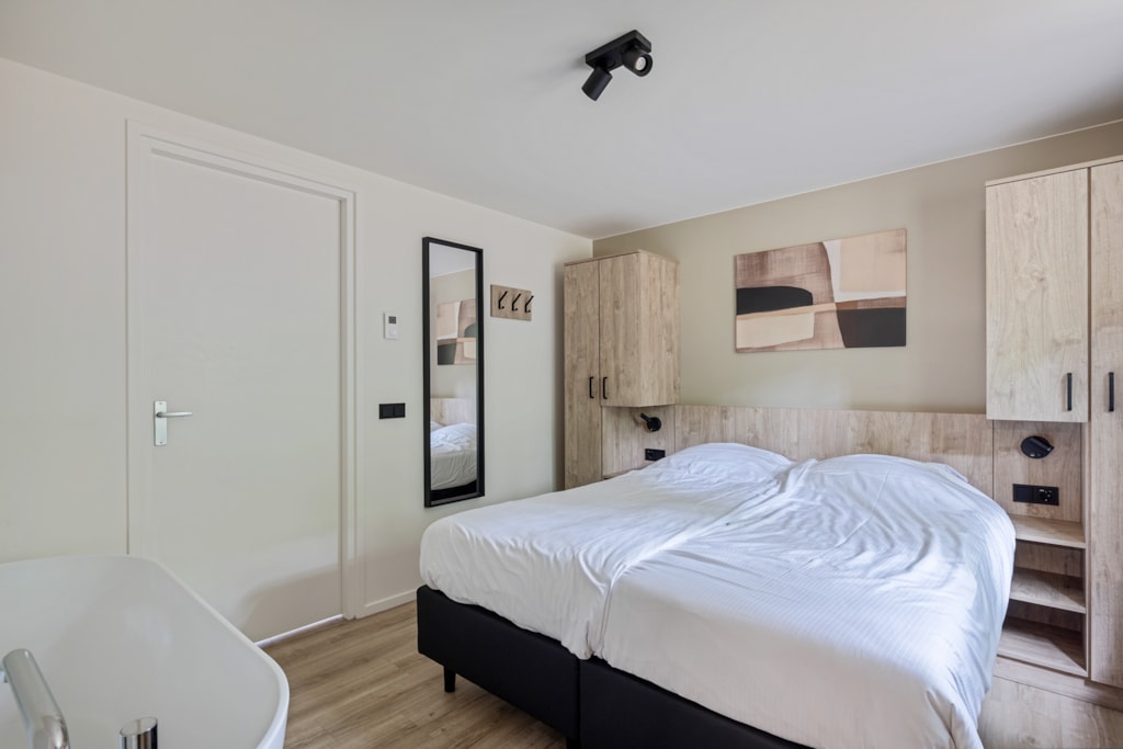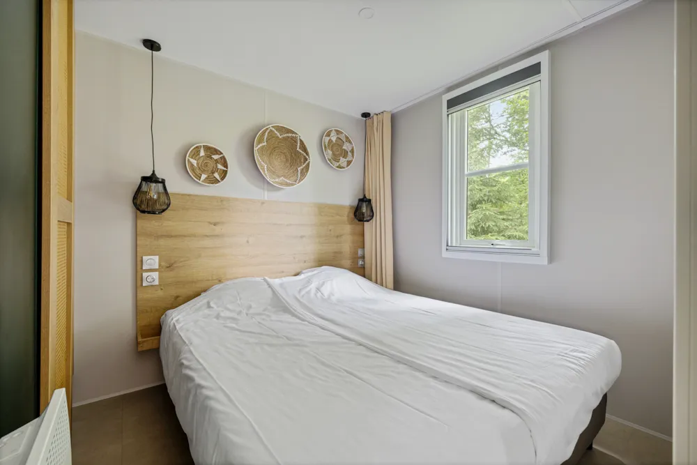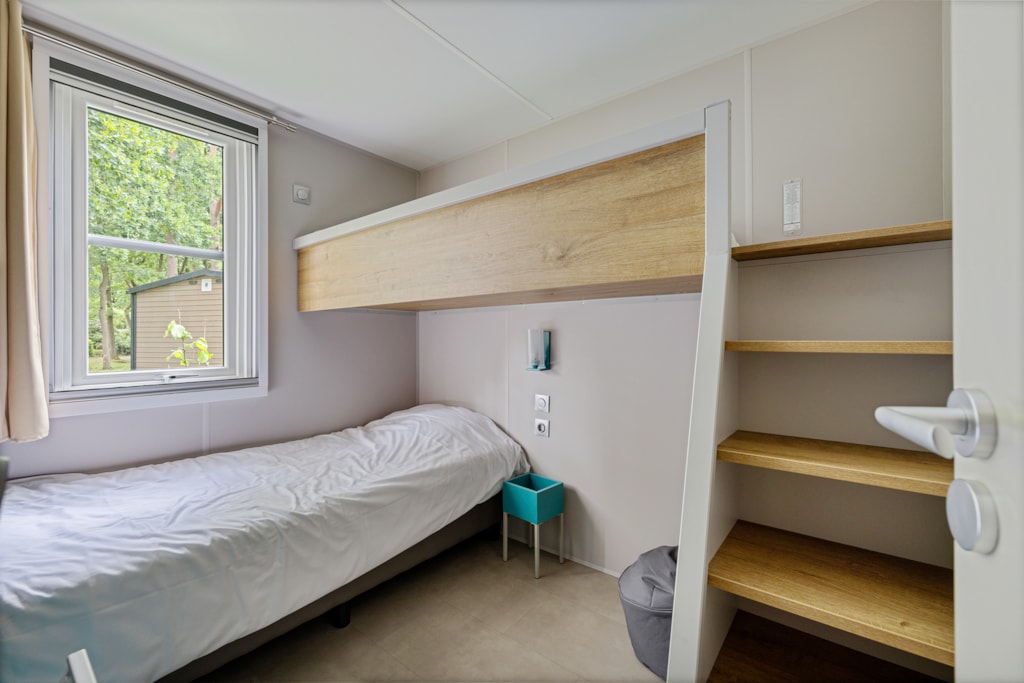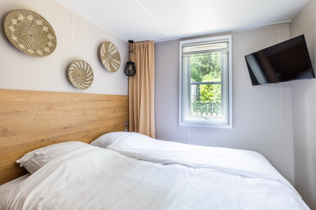 Er zijn twee slaapkamers. Eén slaapkamer met twee luxe Swiss Sense eenpersoons boxspringbedden van 2,00 bij 0,90 meter en de andere slaapkamer met ook twee eenpersoons boxspringbedden. Elke bed heeft een eenpersoonsdekbed en kussens Het bijplaatsen van een babybedje is mogelijk in de grote slaapkamer.