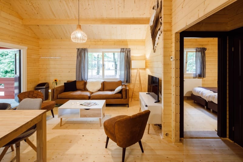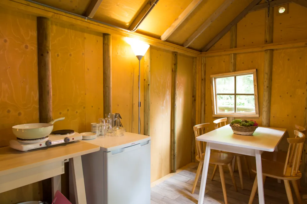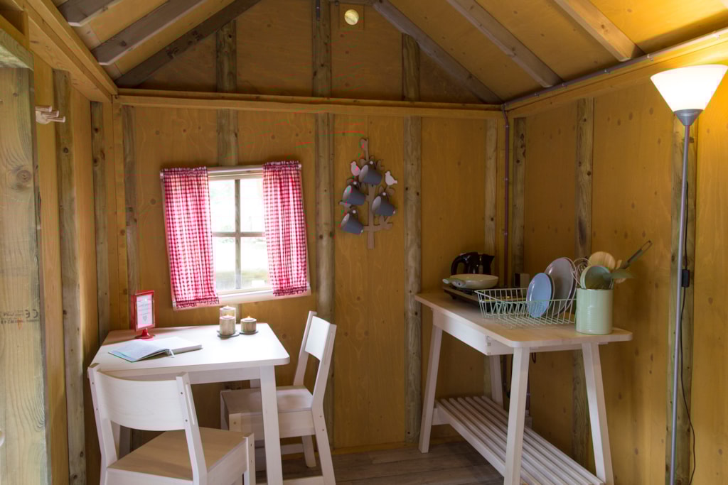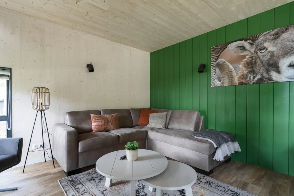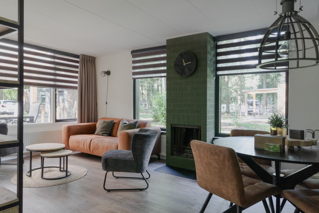 De sfeervol ingerichte woonkamer is voorzien van een comfortabele zithoek en een flatscreen TV. Voor wat extra warmte kun je op koudere dagen de open haard of houtkachel aansteken, maar er is ook centrale verwarming.