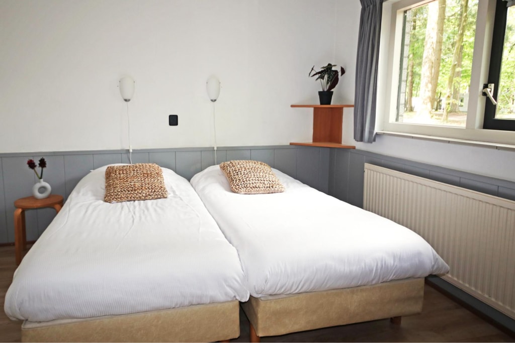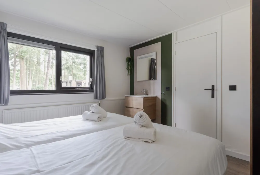 De volledig gerenoveerde vrijstaande bungalows zijn centraal gelegen op het park, gelijkvloers en geschikt voor vier personen. Ideale uitvalsbasis voor een stevige wandeling of fietstocht in de bossen of over de Veluwe.