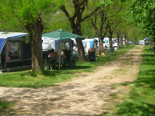 Parzellierte Stellflächen auf Wiesenfläche mit Stromanschluss. Sehr schön und ruhig gelegen. Es ist gibt einen (leider unbeheizten) Pool mit einem netten Außenbereich und einer Bar mit Getränken und Snacks. Baguettes zum Frühstück können vorbestellt werden. Der Sanitärbereich ist einfach, aber sauber.
