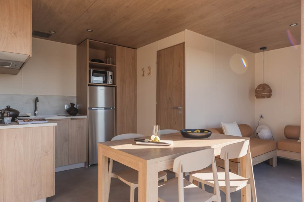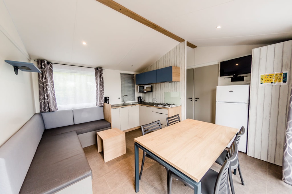 Genießen Sie die Freuden des Campings mit dem Komfort eines Mobilheims: Sie ersparen sich das Aufstellen des Zeltes und haben trotzdem das Vergnügen, sich mit der Familie oder mit Freunden zu treffen und zusammenzukommen!