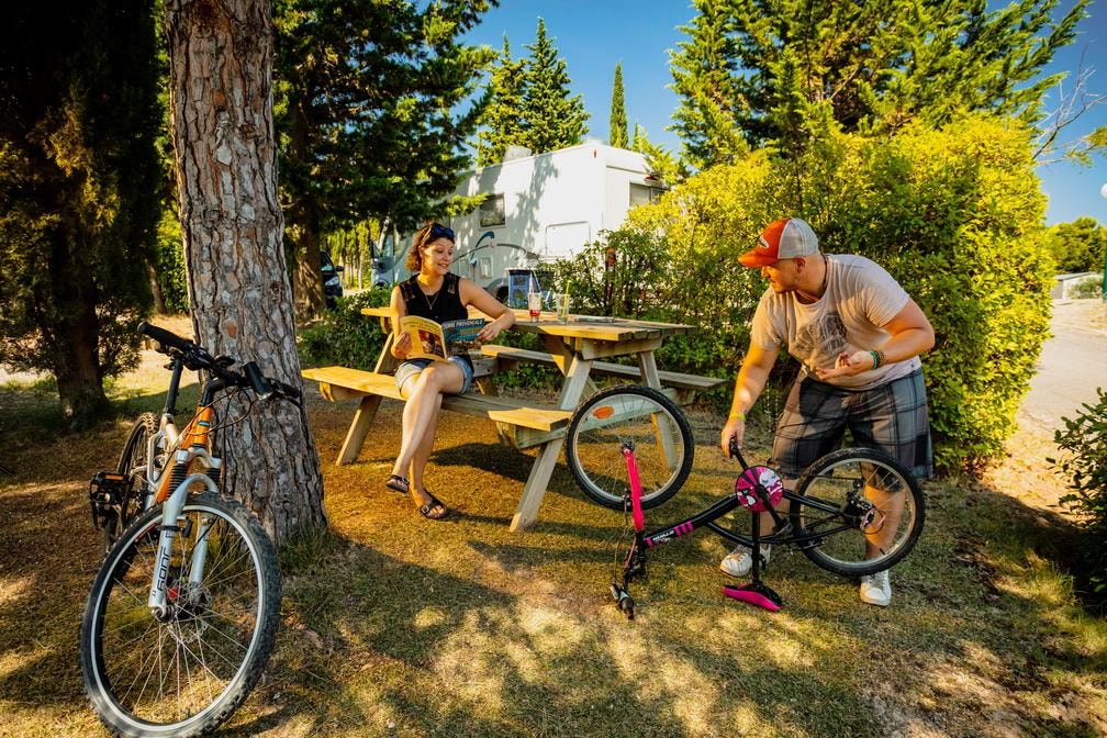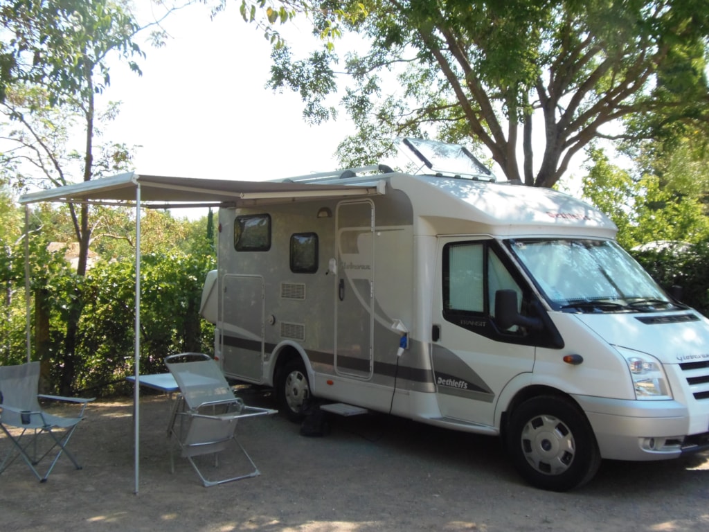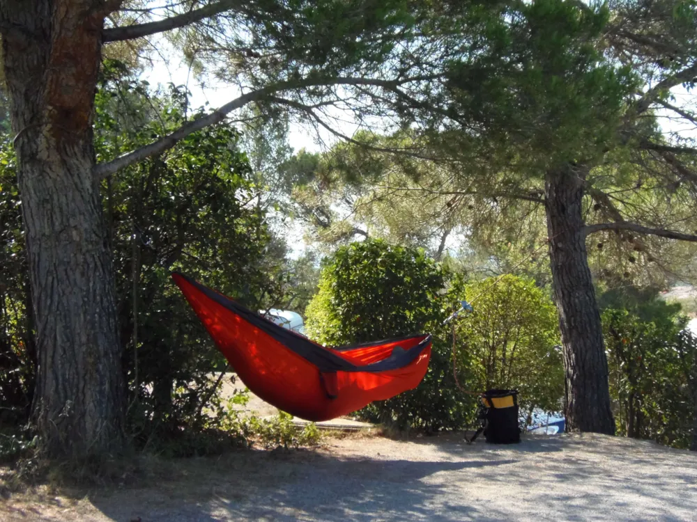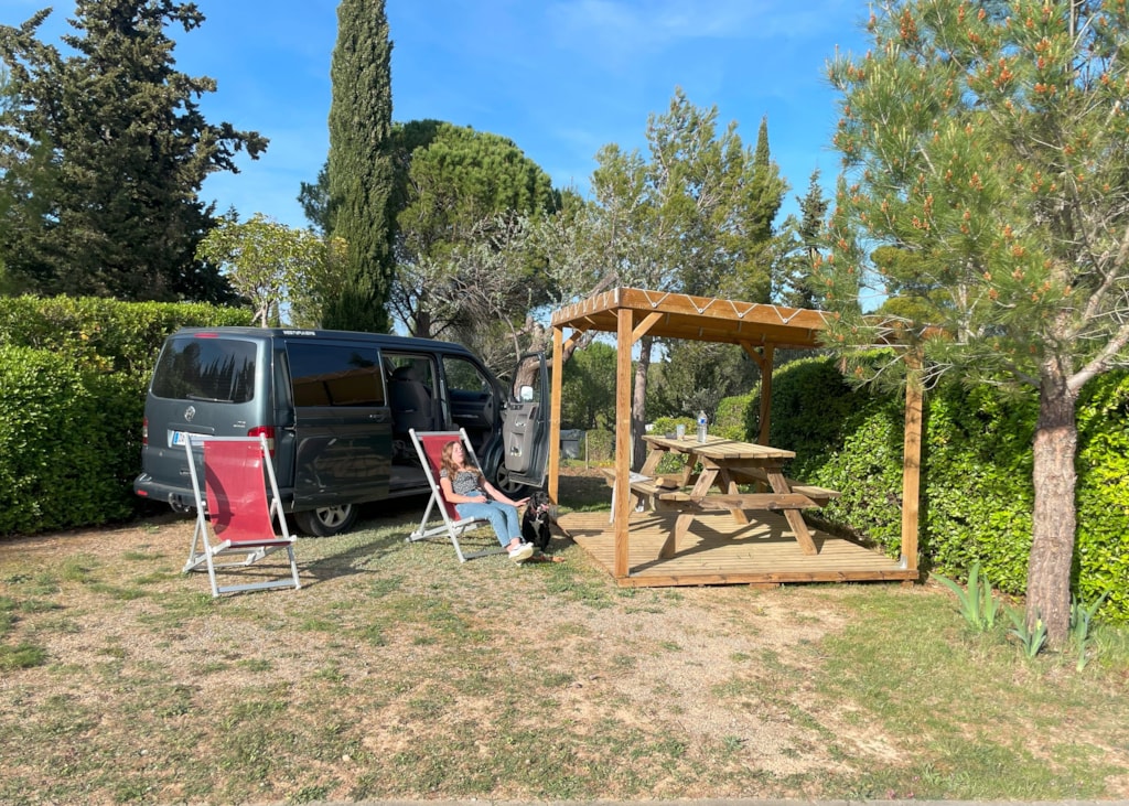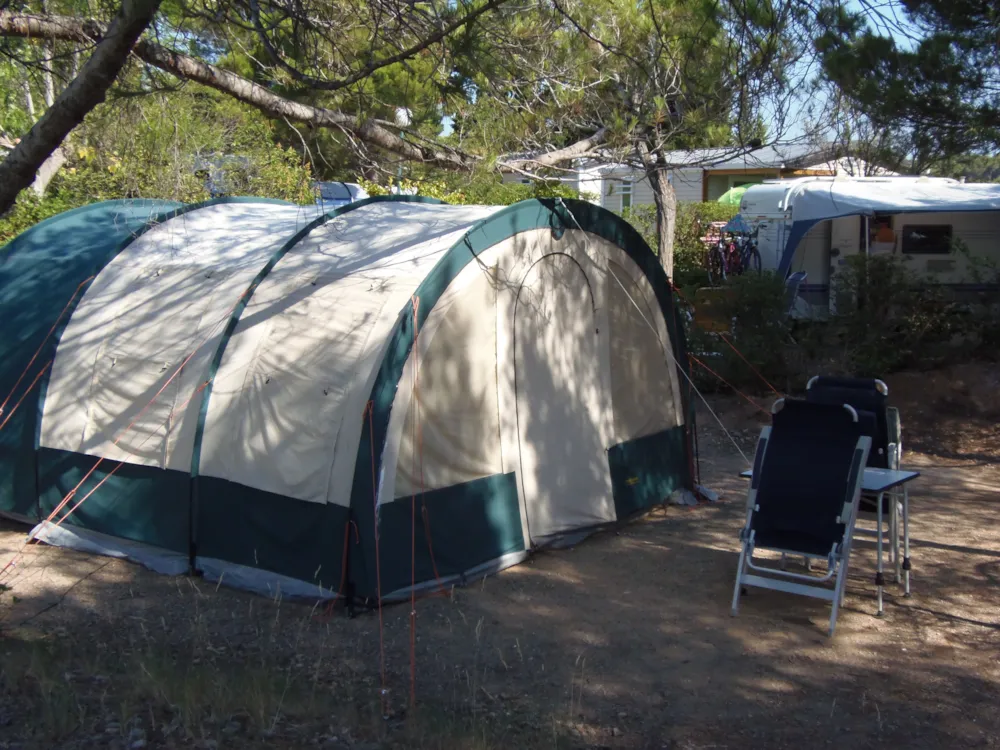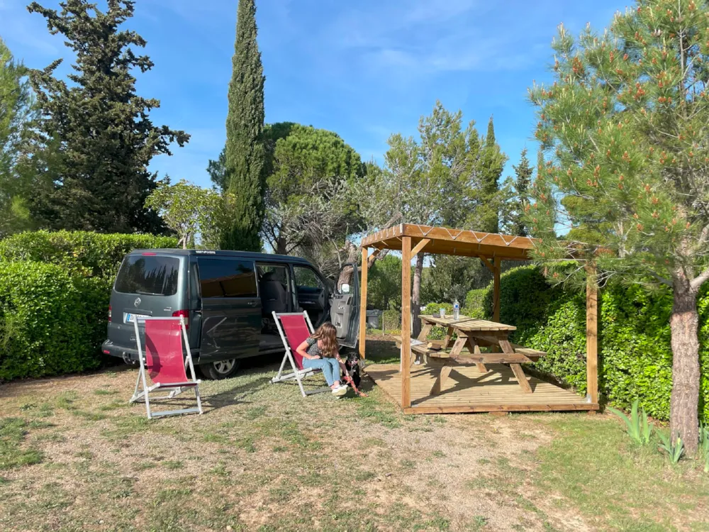 Paket inklusive Stellplatz mit 2 Personen, 1 Fahrzeug + 1 Wohnwagen oder Zelt(e) und Strom. Maximal 6 Personen. Tisch, Bank und 2 Liegestühle. Etwa 100 m². Abgrenzung durch große Hecken. 6 A Stromanschluss und Wasseranschluss für 4 Stellplätze max. Stellen Sie einen europäischen Adapter und eine 20-Meter-Verlängerung bereit.