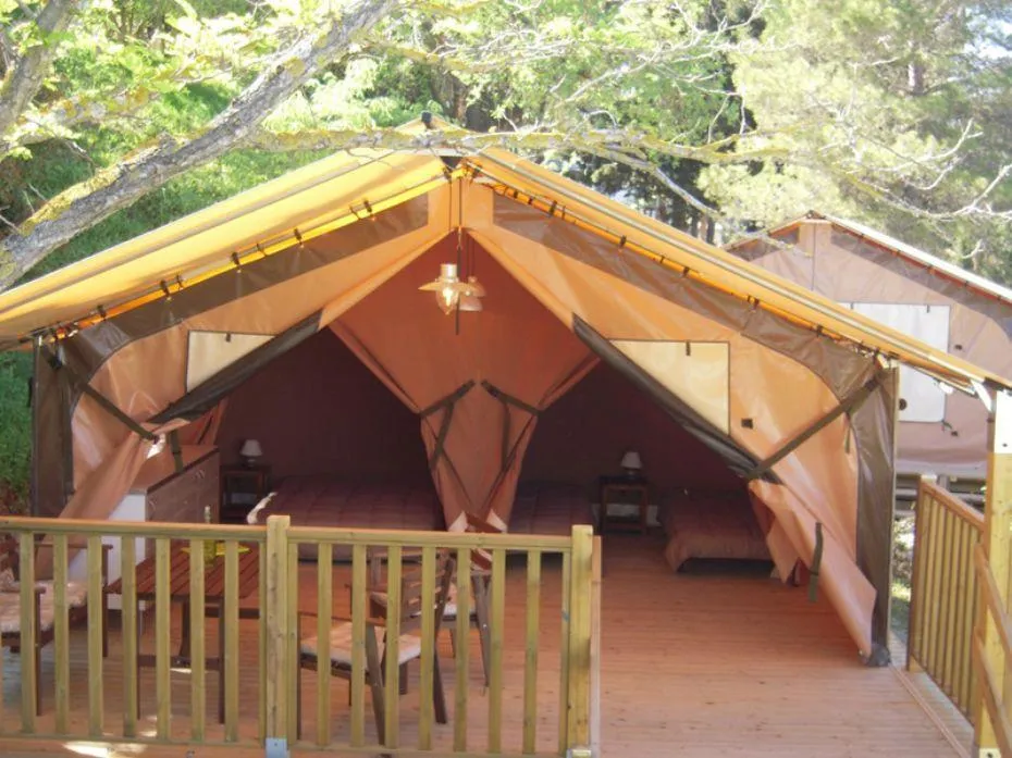 Schönes Zelt von 30 M ². 3 Zimmer: 2 Kammern und ein Aufenthalt. Wie ein Mobil-Heim ohne Sanitärbereich, der für das Zelten Komfort ideal ist!