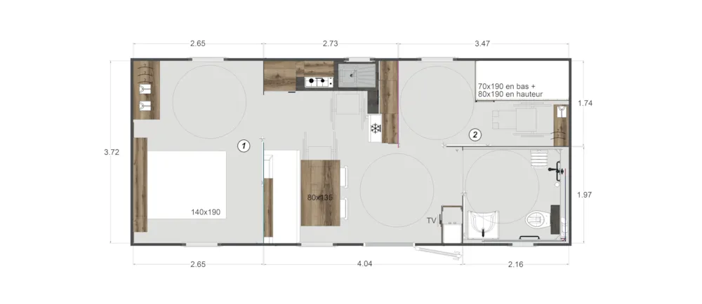 Mobil home : 4 places - 2 bedrooms - 2 bathrooms