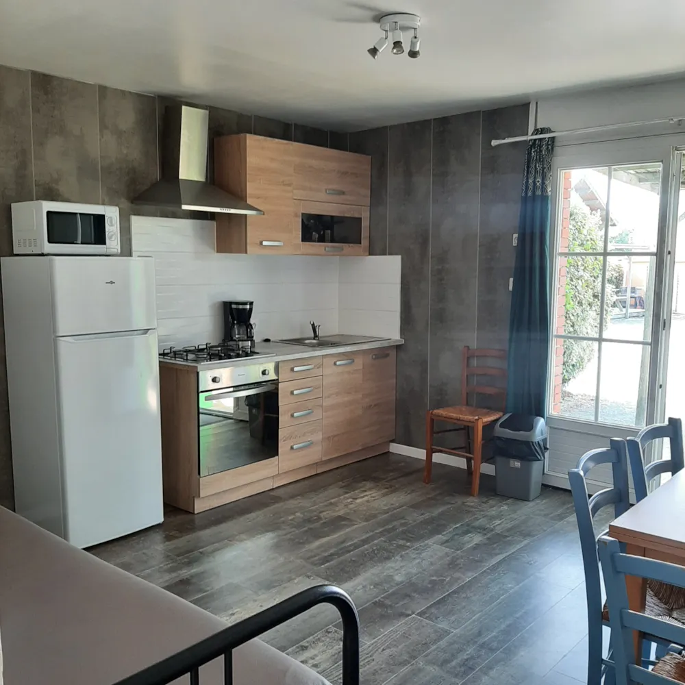 Verweilen Sie in der Welt des Ferienhauses. Vermietung, die 4/6 Personen beherbergen kann. Vollständig ausgestattet: Küche, Badezimmer mit Dusche und WC, Fernseher, Grill, Gartenmöbel. Zusammensetzung: 2 Schlafzimmer: 1 Bett 140, 1 Etagenbett 90 und ein Clic Clac von 140 im Wohnzimmer.